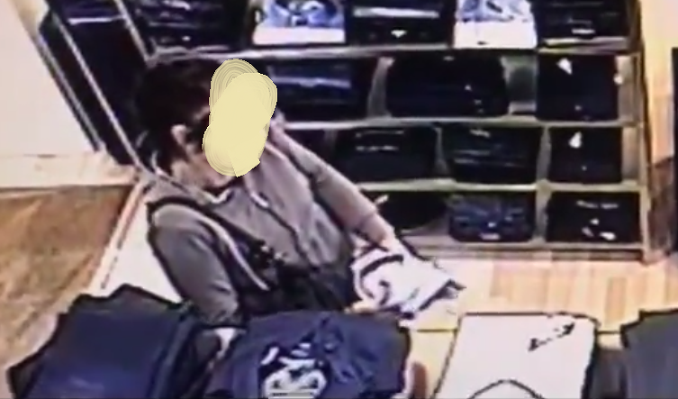 Nel video è visibile una donna che, facendo finta di telefonare prende una camicia, si guarda bene attorno non accorgendosi di una camera che la riprende, e la nasconde in un borsone. Poi va via ignara di quanto appena accaduto.