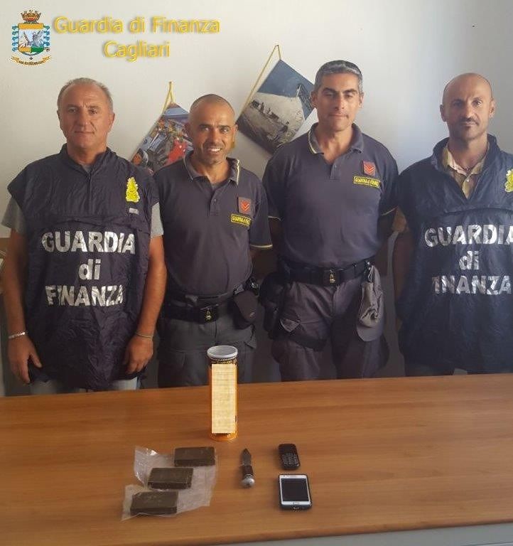 I finanzieri del I° nucleo operativo della guardia di finanza di Cagliari hanno sequestrato 300 grammi di hashish trasportati da un passeggero appena sceso dal traghetto proveniente da Civitavecchia.