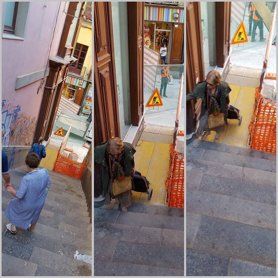 Il risultato lo vedete qui, è nello sguardo affannato e spaventato di questa signora davanti a una scalinata interminabile, unico accesso a casa sua. Ho soccorso e aiutato la signora, ma quante vecchiette oggi faranno le stesse scale da sole? “