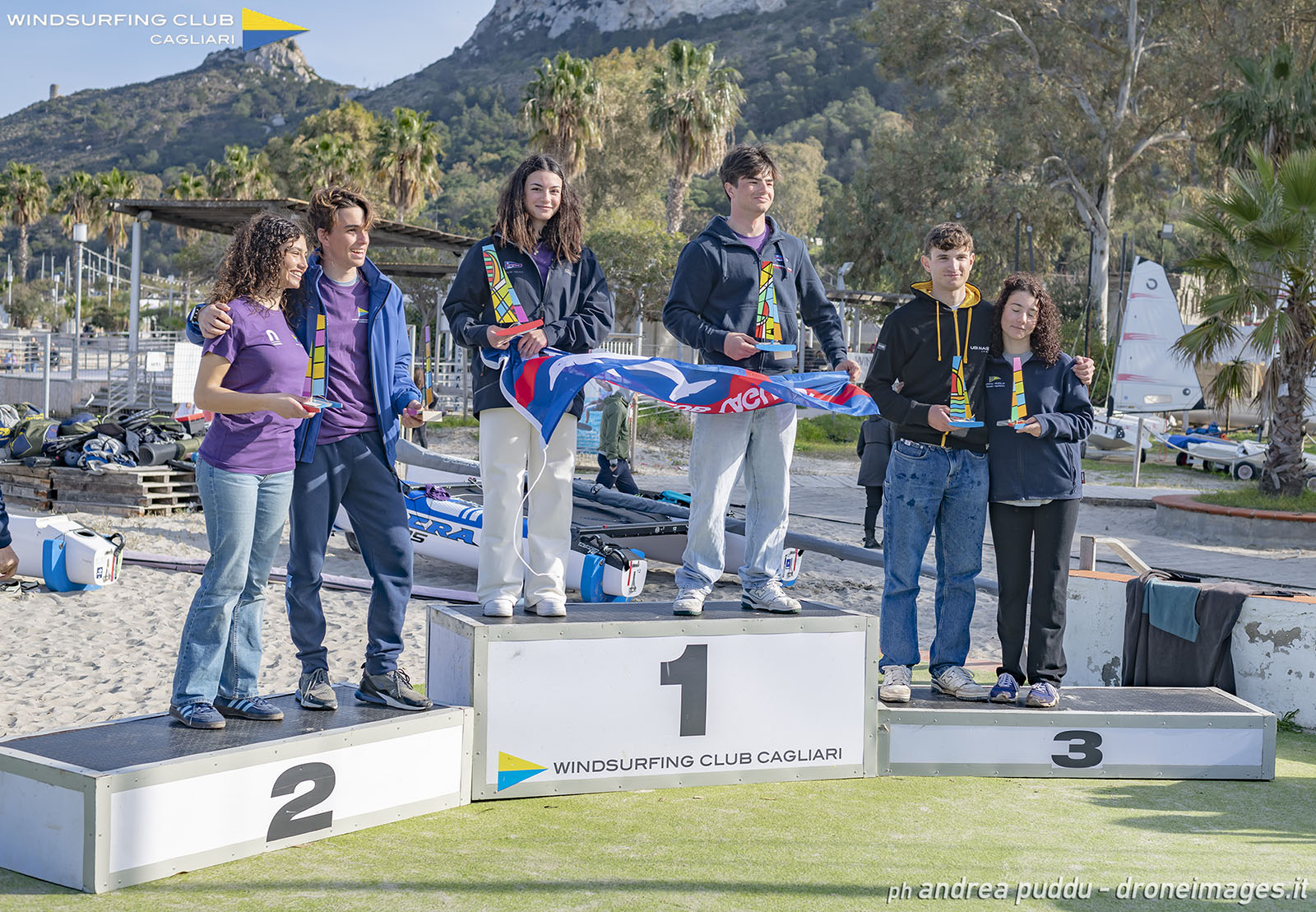 Al termine di 12 prove, sul gradino più alto, gli atleti Lorenzo Sirena e Alice Dessy dello Yacht Club Cagliari che, avendo tagliato per ben 6 volte la linea di arrivo al primo posto, si aggiudicano l’oro nella classifica assoluta davanti ai compagni di bandiera Benedetta Ghiani e Gigi Zonca, a cinque punti di distanza; terzi i velisti del Windsurfing Club Alessandro Vargiu e Noa Lisci, a cui va il grande merito di non aver abbandonato il campo di regata nonostante la febbre alta, e anzi, ciò nonostante, di aver messo a segno due ottimi primi posti.