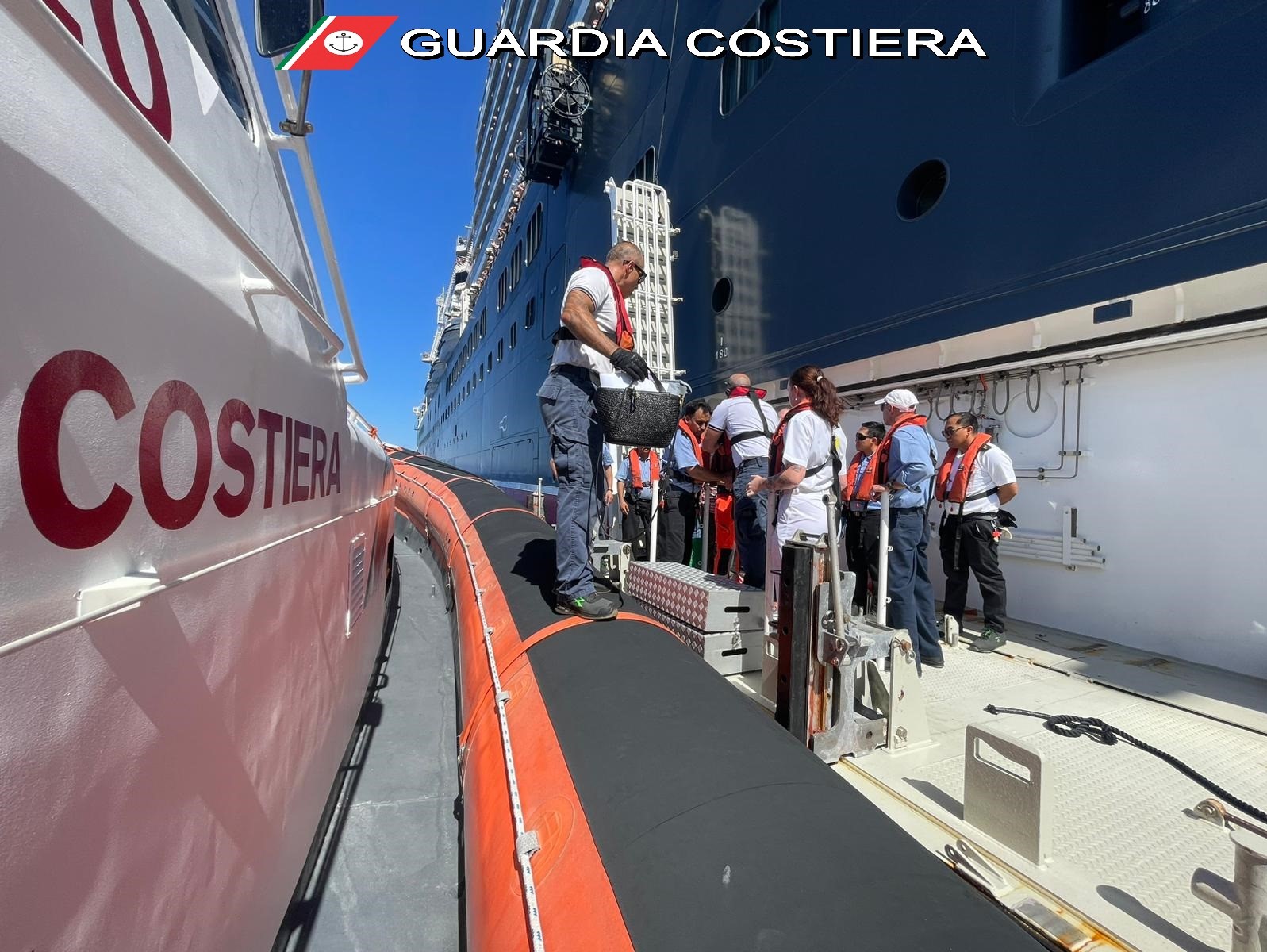 Nella mattinata di ieri la Guardia Costiera di Cagliari ha ricevuto una richiesta di soccorso da parte di una nave da crociera di bandiera Bermuda, a circa 75 miglia a sud est di Cagliari, in navigazione da Messina a Malaga per assistenza di una passeggera di 72 anni colta da ictus.
