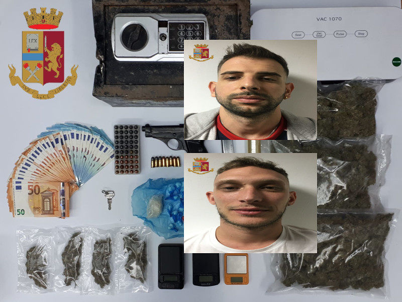 Il personale del gruppo “falchi” della polizia ha arrestato Gabriel Del Zompo (28 anni) e Marco Schirru, di un anno più grande, per il reato di detenzione di sostanze stupefacenti e arma clandestina. Ieri sera i poliziotti, dopo lunghe indagini e controlli svolti nella zona di via San Giuliano, hanno scoperto che i due si spostavano con le loro automobili raggiungendo altre zone della città per vendere la droga. Gli agenti hanno bloccato e perquisito il 28enne: addosso aveva 6,85 grammi di cocaina e 265 euro in contanti. Ancora, dentro l’auto aveva altri 0,10 grammi di coca. All’interno di una delle sue due case sono saltati fuori altri 5,30 grammi di coca, un bilancino di precisione e 1050 euro in contanti, oltre a vari bilancini e buste sottovuoto utili per confezionare la droga. Non solo: dentro una sua seconda casa, nascosta sotto un mobile della cucina è stata trovata una pistola Beretta 70 calibro 7,65 con la matricola abrasa e 5 proiettili, una busta sottovuoto con altri 53 proiettili e, nascosta sottoterra in giardino, una cassaforte con dentro 329,80 grammi di marijuana.
