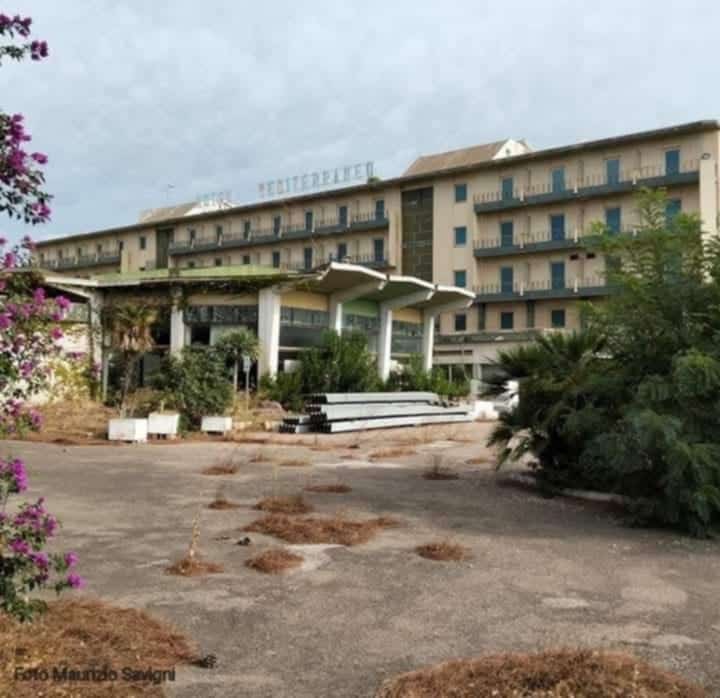 Cagliari e Hotel Mediterraneo, un binomio che ha funzionato per anni. Nome più azzeccato non poteva avere un albergo ubicato in quel punto: da un lato la chiassosa viale Diaz, tanto smog ma un affaccio sulla città aggrappata sulla roccia, all’altro lato il caldo abbraccio del tramonto sul mare, e poi viale Colombo, chiacchierata strada dei pettegolezzi di allora. Oltre mezzo secolo di storia alberghiera, linee essenziali color crema con tratti in marmo verde, lui, il Mediterraneo per l’appunto, fascino che tiene il tempo nonostante l’abbandono. Camere spartane con rudi balconi, a parte le suite, ma la pasticceria era da rischio glicemico.