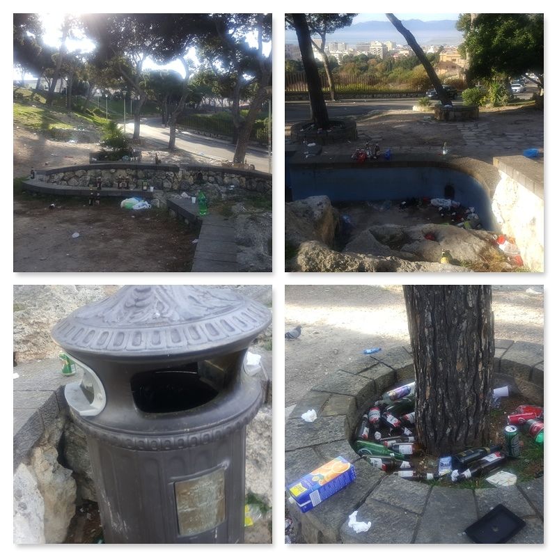 IL DEGRADO. “La domenica mattina i turisti, i cagliaritani che decidono di fare una passeggiata in uno dei punti più belli e caratteristici della città sono costretti a questo desolante spettacolo, con cumuli di rifiuti che finiscono anche all’interno dell’Anfiteatro Romano – conclude Deidda – nonostante oramai sia da tempo esserci questo problema, le Istituzioni sono assenti- Sono d’accordo con questo scempio?”