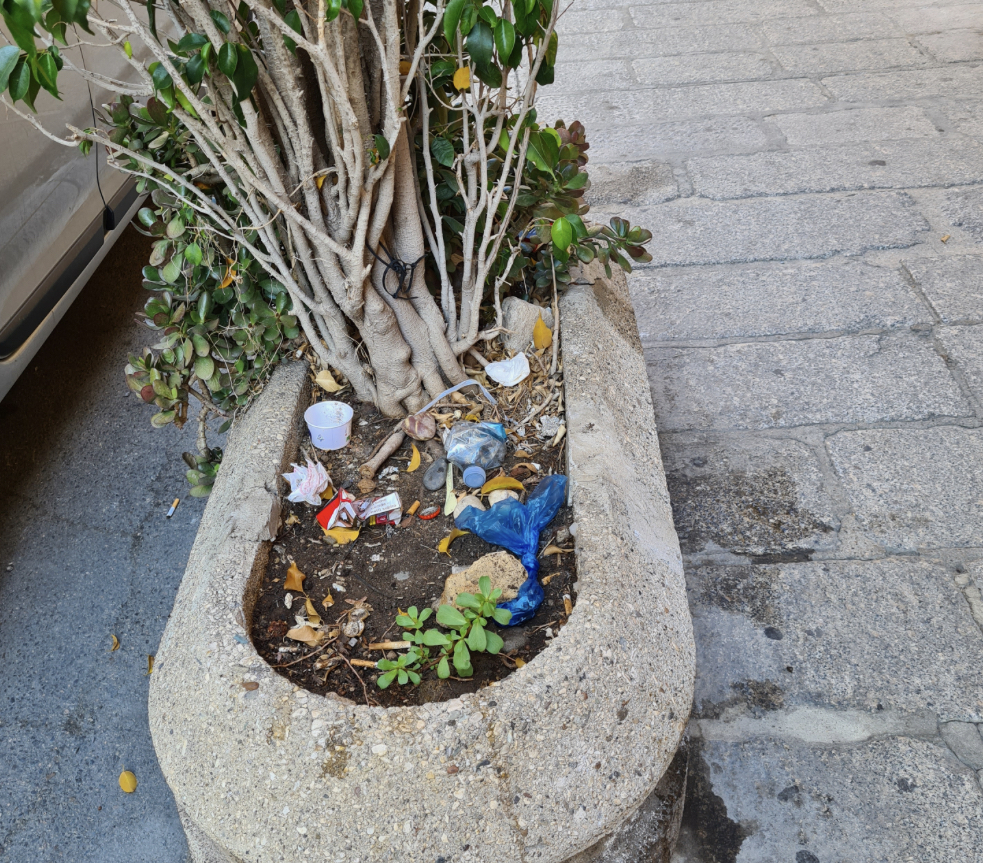 FIORIERA O ” PATTUMIERA” ? Accade anche questo in pieno Centro Storico, nel Corso Vittorio Emanuele a Cagliari !!!