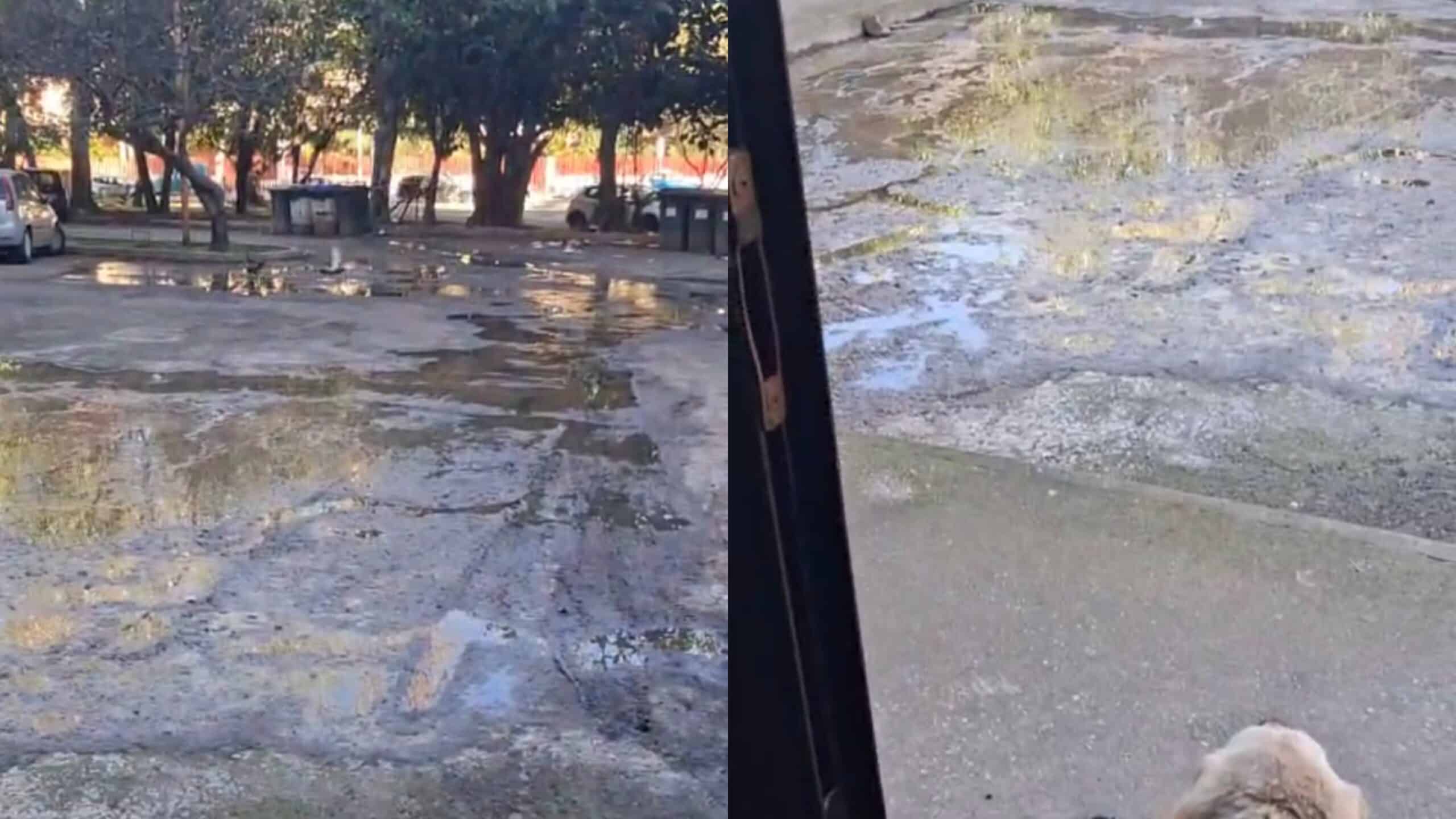 Il piazzale di ingresso è inondato dai liquami, non si può passare, bisogna aggirare l’ostacolo. Il problema sussiste anche solo aprendo le finestre per far arieggiare la casa. “Chiediamo che la nostra richiesta venga celermente presa in carico”.