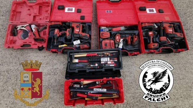 Durante il controllo presso un campo nomadi di Monserrato i Falchi, insieme agli equipaggi del Reparto Prevenzione Crimine “Sardegna”, hanno ritrovato all’interno di un’auto 5 cassette con utensili industriali di grande valore. La refurtiva era stata portata via, come detto, da due cantieri edili.