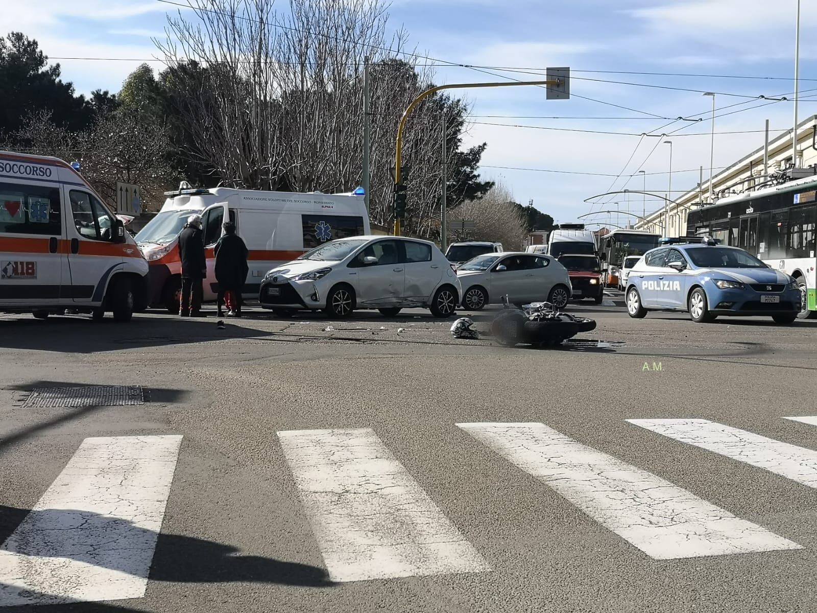 Gravissimo incidente poco dopo le 11 in viale Poetto a Cagliari. Un’auto e una moto si sono scontrate all’altezza della banca: l’impatto è stato molto forte e il motociclista è finito sull’asfalto, riportando varie ferite e traumi. Sul posto sono intervenute due ambulanze del 118. È il centauro ad aver riportato gravi ferite, tanto che è stato trasportato al Brotzu in codice rosso per un politrauma. Le sue condizioni sono gravi.