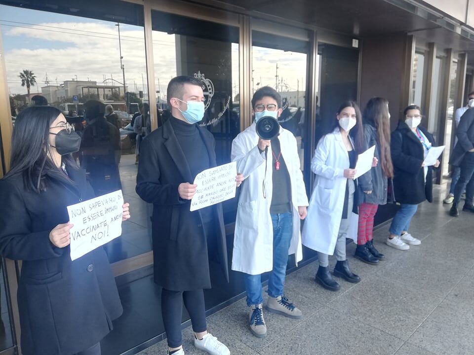 Tra chi protesta ci sono tirocinanti che raccontano di essere dovuti andare “anche nelle case dei malati, senza essere stati vaccinati. Mettiamo a rischio noi stessi e loro, ecco perchè le dosi vaccinali sono indispensabili. Vaccinarci è un nostro diritto e dovere”. Altre storie? Specializzande che, in Ostetricia, hanno avuto a che fare “con mamme che hanno partorito e che, poi, sono risultate positive al Coronavirus. Il parto, visto che è un evento improvviso, non consente di poter effettuare il tampone e attendere il risultato. Basta, vogliamo essere vaccinati, siamo a rischio e abbiamo paura”.