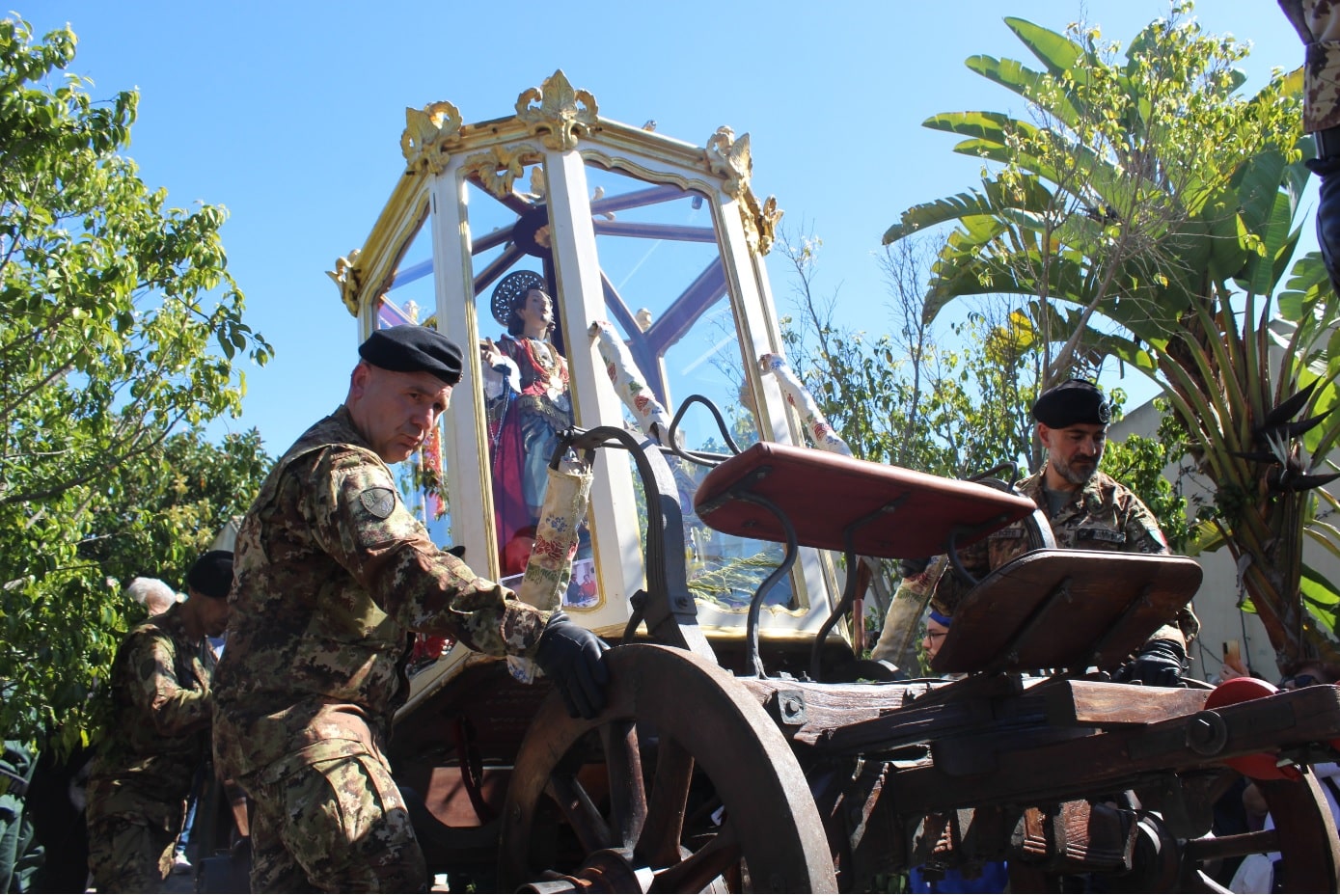 In particolare, i trasmettitori del “Gennargentu”, dopo aver ancorato con particolare cura il carro di campagna del Settecento e la statua del Santo, si sono occupati del suo trasferimento con un automezzo dell’Esercito, da Giorgino (Villa Ballero) a Capoterra (La Maddalena Spiaggia), tratto in cui, dopo la costruzione del porto canale che ha interrotto la vecchia strada per Pula, il tradizionale percorso a piedi è sospeso.