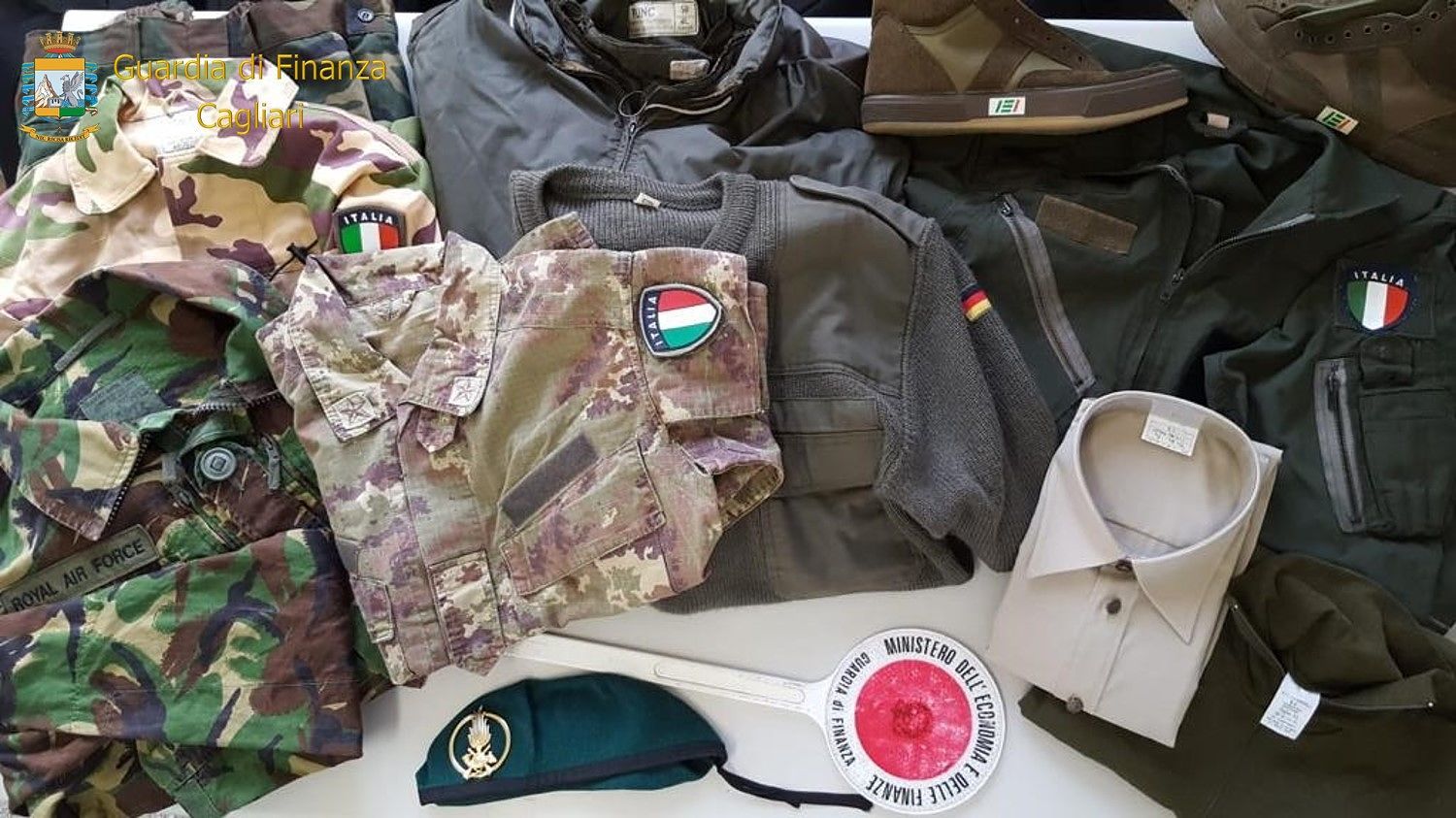 I Baschi Verdi della Guardia di Finanza di Cagliari, durante un servizio di controllo economico del territorio hanno sottoposto a sequestro 239 articoli di abbigliamento, riconducibili a Corpi militari e Pubbliche istituzioni posti in vendita in violazioni delle specifiche normative in materia.