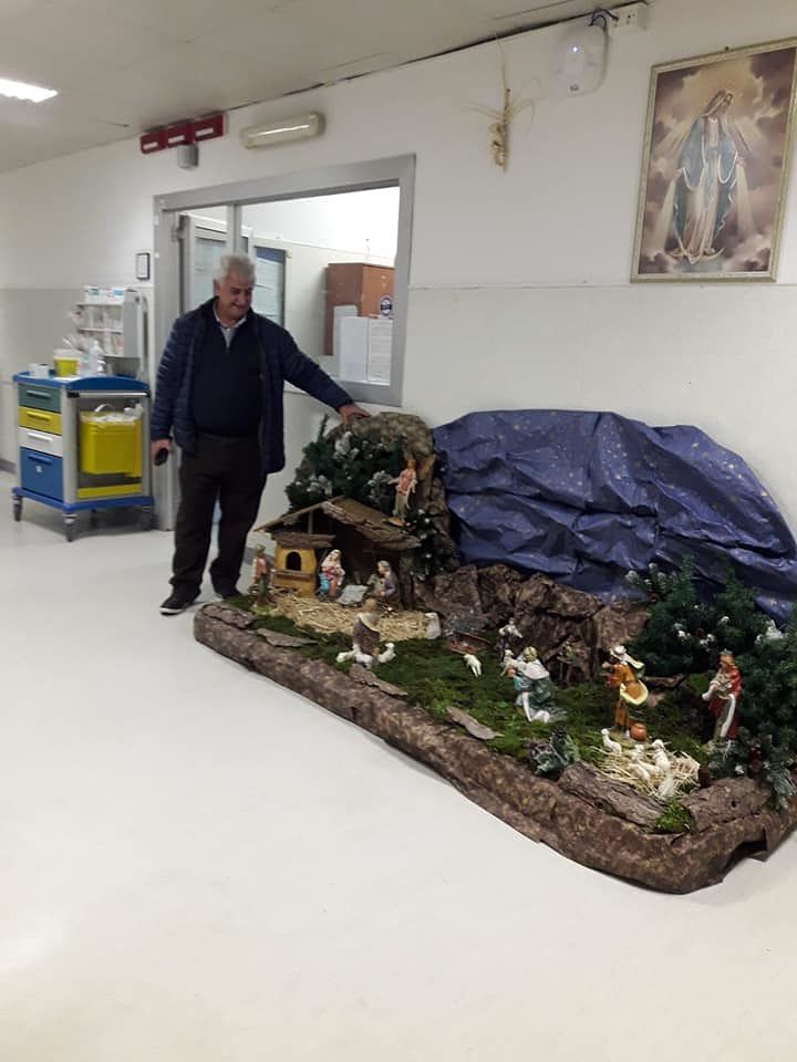 Ecco il presepe in Chirurgia Generale a “G.Brotzu” di Cagliari, senza lampade elettriche per motivi di sicurezza. Pino Argiolas dell’associazione Prometeo che raggruppa i trapiantati lo espone con orgoglio, una piccola ma importante luce nel mondo della buona sanità: “Anche quest’anno Vincenza Congias e i suoi colleghi infermieri lo hanno preparato per ricordare che il Natale sta arrivando. Manca solo l’albero che a breve arriverà”. Perchè è Natale anche in corsia.