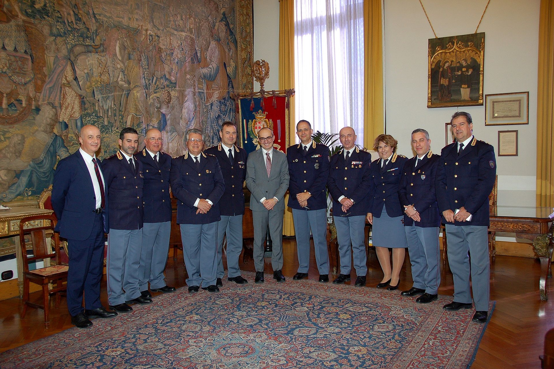A Palazzo Bacaredda, questa mattina di mercoledì 8 gennaio 2020 ad affiancare il Comandante Giardina, anche nove altri dirigenti sardi della Polstrada.