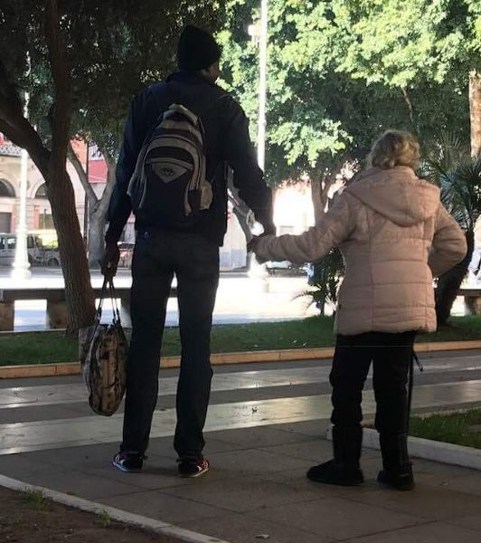La foto è stata accompagnata da un lungo post che ricostruisce il dialogo, intercettato da Eva Garau, tra i due protagonisti: lei una donna anziana con difficoltà nella deambulazione e lui un giovane con la pelle scura. Probabilmente uno dei tanti immigrati africani che frequentano la piazza. Nello scatto sono mano nella mano.