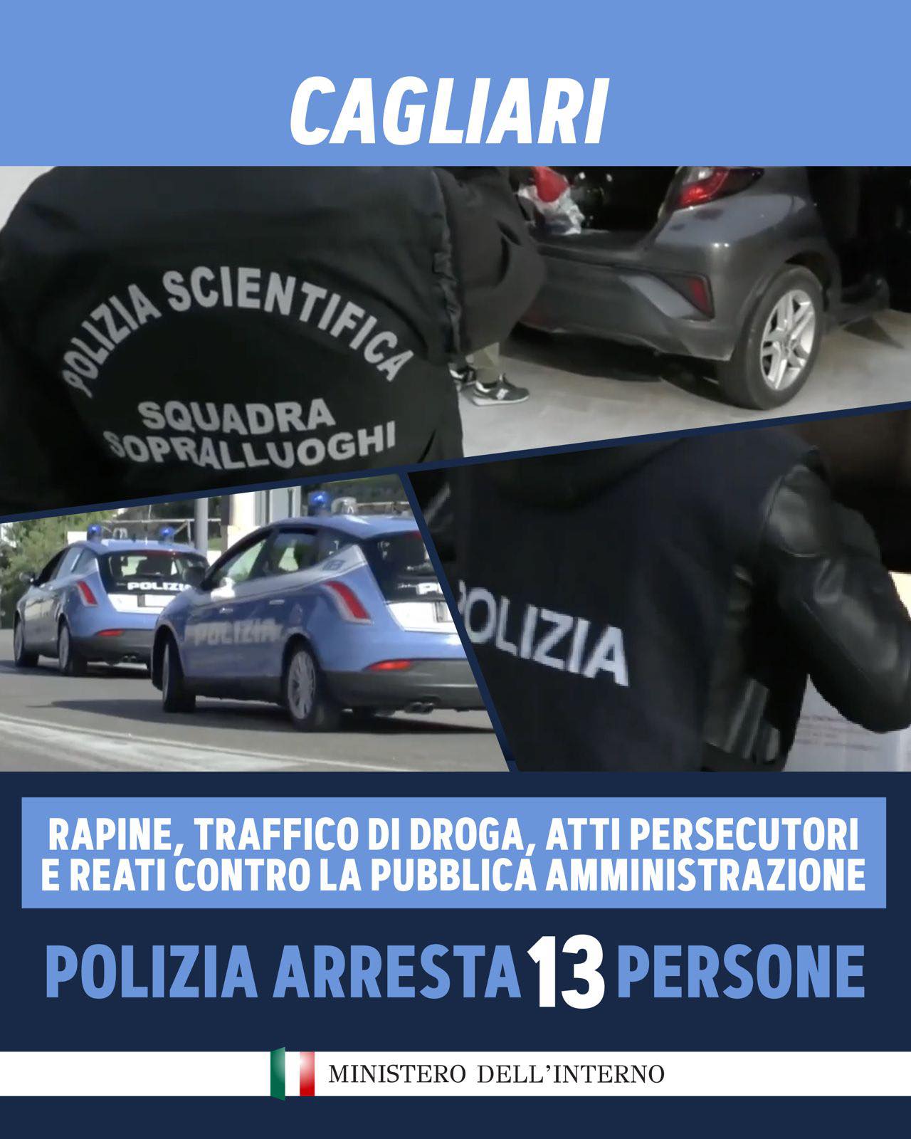 Cagliari, in 13 arrestati per rapine e droga: il ministro Piantedosi loda l’operazione della Polizia sarda.Dal Viminale un importante elogio per gli agenti della Questura cagliaritana, ecco di cosa si tratta “Sono 13 i soggetti arrestati a Cagliari dalla Polizia di Stato per rapina a mano armata, traffico di droga, atti persecutori e gravi reati contro la Pubblica Amministrazione. L’indagine, coordinata dalla Direzione Distrettuale Antimafia, ha fatto luce sulle dinamiche del sodalizio criminale attivo nello spaccio di stupefacenti, tra Cagliari, Selargius e Quartu Sant’Elena, caratterizzato dal ricorso sistematico e spregiudicato alla violenza per perseguire i propri scopi”, spiega il ministro Piantedosi. Di che operazione si è trattato nei dettagli?