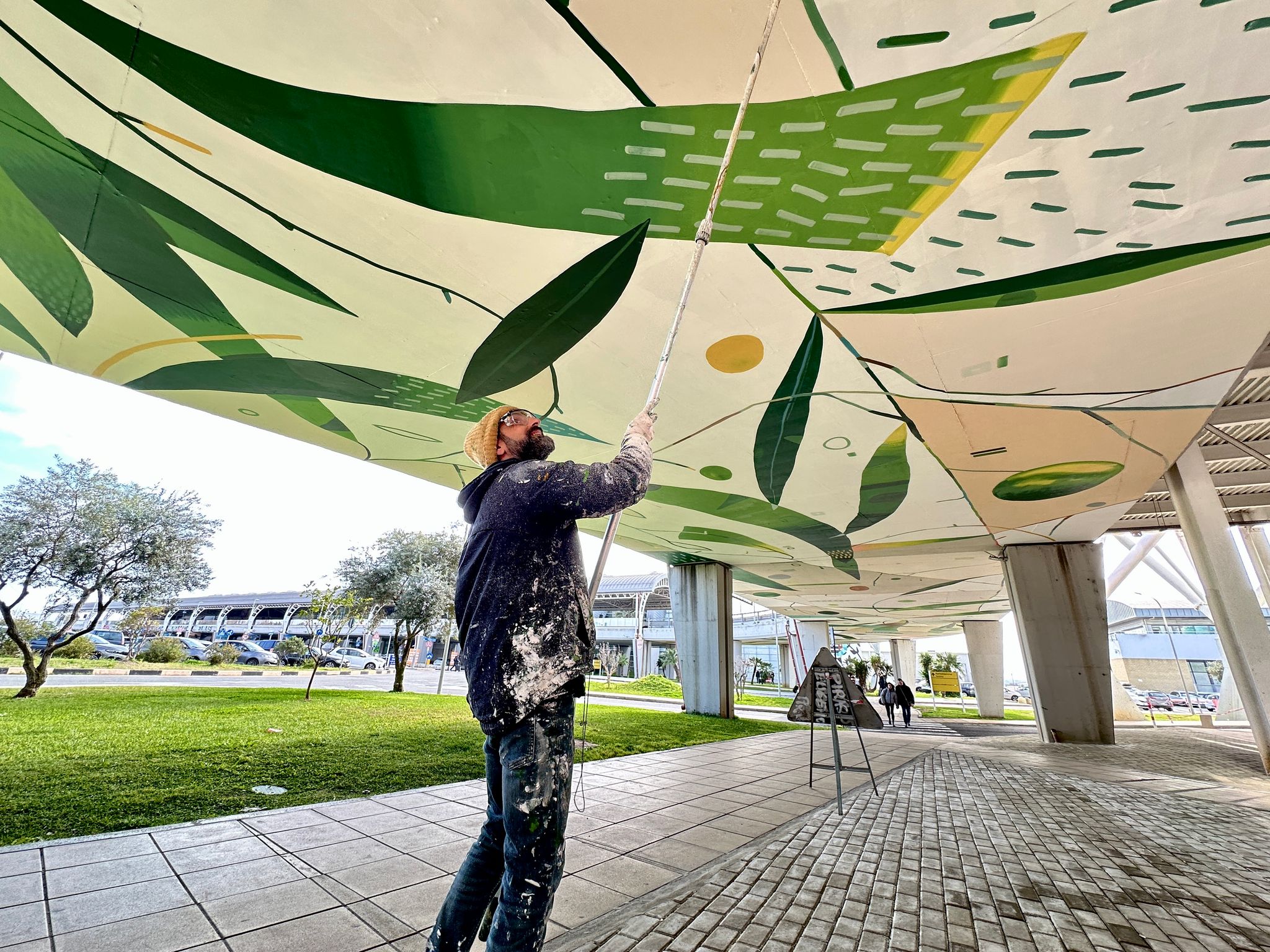 Un nuovo murale si aggiunge e completa l’opera di Jorghe all’aeroporto di Cagliari: dopo L’Albero della Vita, che accoglie i passeggeri in arrivo dalla stazione ferroviaria, sullo stesso percorso si aggiunge La Galleria degli Ulivi. Lungo il viadotto, i viaggiatori sono accompagnati da una copertura dipinta che si estende per 100 metri, trasformando il tragitto in una vera e propria esperienza artistica.