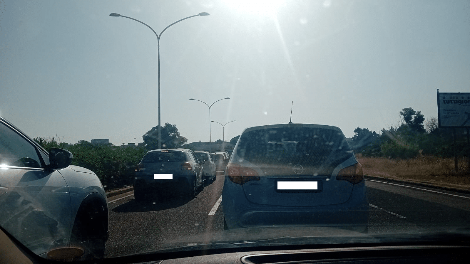 Subito si è formata una lunga coda di automobili, ferme sotto il sole.