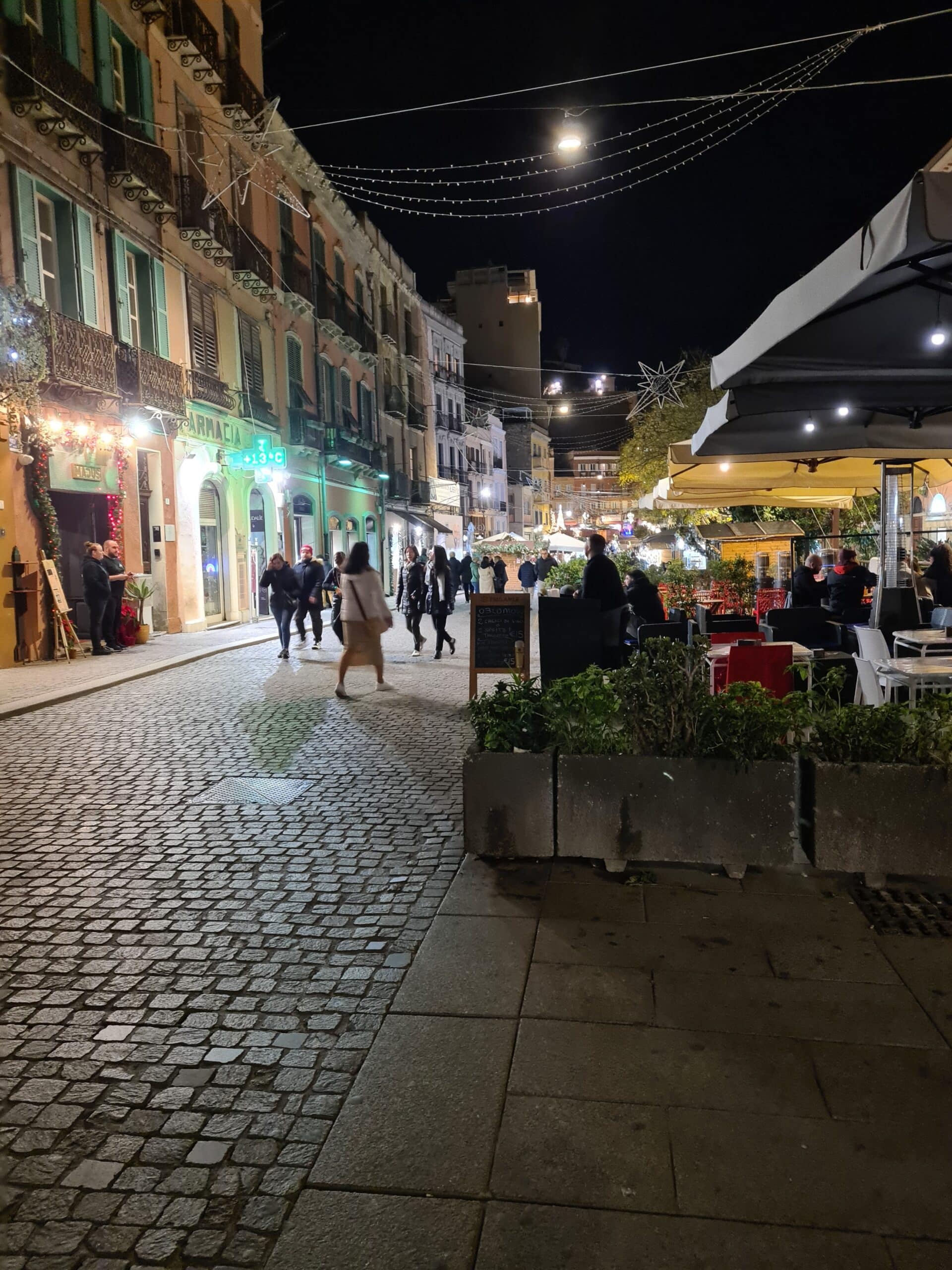 Per due giorni consecutivi, luminarie a metà nelle strade del Centro storico a Cagliari. Metà accese e metà spente.