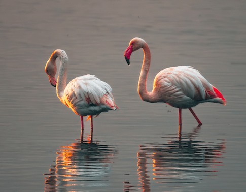 Fenicotteri nella foto della Laguna di Santa Gilla all’alba.