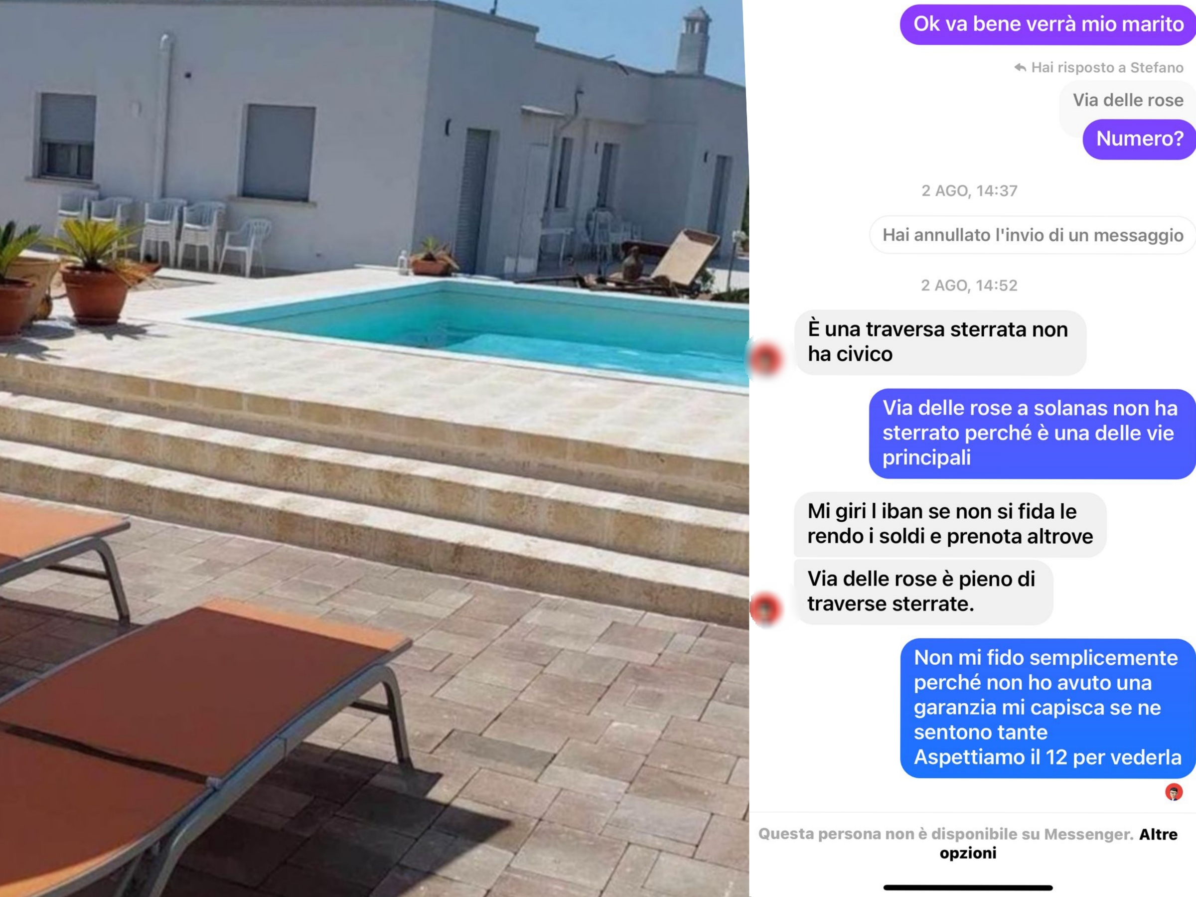 La truffa per il Ferragosto? Servita, anche nel Cagliaritano. L’ha ordita, stando a varie testimonianze che a breve saranno rinforzate con denunce, varie persone, residenti sia nel capoluogo sia nell’hinterland, uno che su Facebook ha il nome Stefano Stefano. Una villetta a poca distanza dal mare, a Solanas, proposta a prezzi più che convenienti. 350 euro per arrivare il quattordici agosto e andare via il pomeriggio del quindici, o cinquecento per tre giorni. Piccolo particolare? “Abbiamo visto solo le foto, della villa non c’è traccia. Il padrone ci ha detto che si trovava in una traversa, sterrata, quindi impossibile da vedere per esempio con Google Maps”, spiega una delle truffate, Valentina Piredda, 34enne di Monserrato. “Avevamo prenotato in sette, due famiglie più i bimbi. Voleva 350 euro per Ferragosto, gli ho bonificato la metà e, dopo avergli chiesto informazioni aggiuntive in chat, mi ha bloccata. Non ha nemmeno voluto darmi il numero di cellulare per suoi motivi di privacy”. Le ferie, però, sono rovinate: “Molto presto andrò dalla polizia Postale, spero di riuscire a rintracciarlo”. L’Iban è intestato a un tale Federico, il cognome è cento per cento sardo.