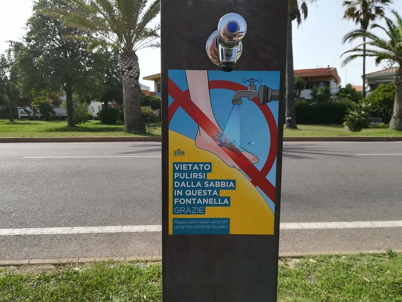 Le fontanelle del Poetto di Cagliari? Possono essere utilizzate per bere, come viene spiegato, in inglese, nei cartelli posizionati proprio sotto i rubinetti. Un invito ai cagliaritani, in primis, ma anche ai turisti. Un divieto bilingue: “Vietato pulirsi dalla sabbia in questa fontanella, grazie”. E il logo in alto a sinistra è quello del Comune di Cagliari. Il motivo? Si può solo ipotizzare, visto che non viene spiegato. Forse gli scarichi rischiano di intasarsi di sabbia, o forse si tratta di un invito ad utilizzare le docce pubbliche presenti in varie porzioni di spiaggia. Un fatto è certo: tutte le fontanelle dalla Prima fermata al confine quartese devono essere utilizzate, principalmente, per dissetarsi e non per pulirsi. Le foto, pubblicate anche nel gruppo Facebook “Poetto”, hanno già acceso il dibattito tra i tanti frequentatori del lungomare: c’è chi approva il divieto e chi, invece, lo vede come una seccatura.
