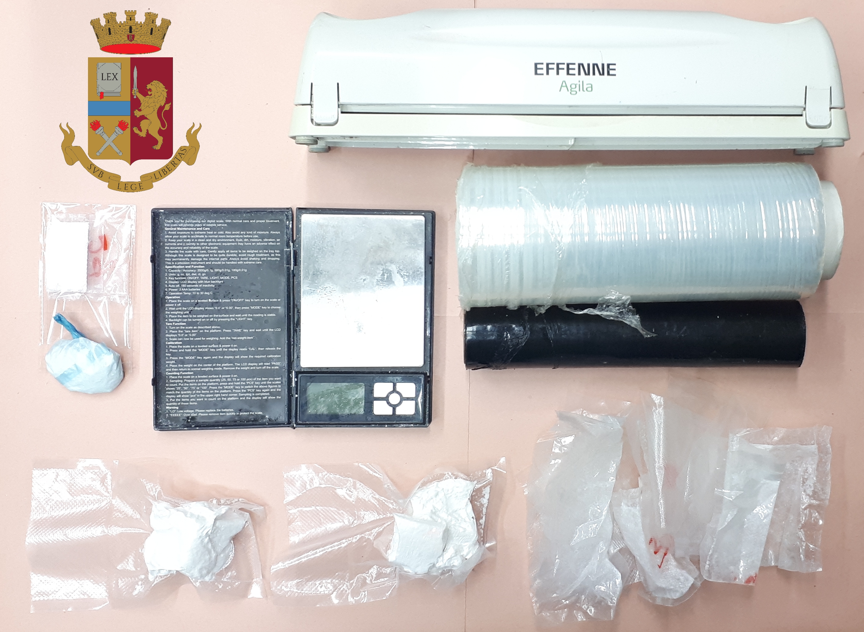 La minuziosa perquisizione in cucina ha permesso di rinvenire, incastrato sotto al tavolo, un bilancino di precisione con evidenti tracce di stupefacente ed una busta chiusa ermeticamente, contenente cocaina per un peso lordo di g. 3,10.