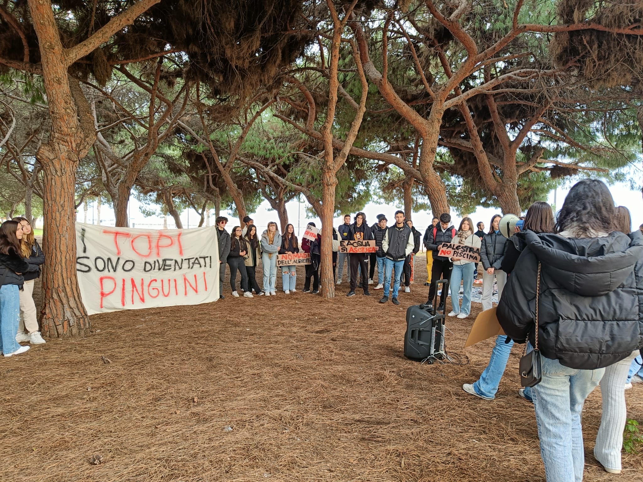 Striscioni e cori di protesta degli studenti del liceo Scientifico Alberti di Cagliari. Gli alunni hanno scioperato per le troppe criticità presenti nei due istituti: “Le infrastrutture scolastiche sono inadeguate e fatiscenti, la sede centrale dell’istituto, ovvero quella situata in Viale Colombo, presenta visibili danni strutturali, e una parte dell’edificio scolastico è stata dichiarata inagibile. Nonostante siano stati effettuati dei controlli sulla sicurezza dell’intero edificio, non si è ricevuto alcun esito finale dagli organi competenti”, denunciano i giovani.