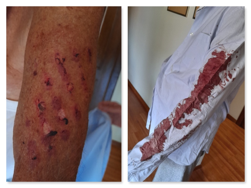 Una volta rialzati, da soli e senza aiuto, la sorpresa: “Ho ferite estese lungo tutto il braccio sinistro. Ho viaggiato con la camicia completamente insanguinata. Ho provato a chiedere l’intervento di un infermiere per una prima medicazione e mi hanno risposto che, a causa dei tagli alla Sanità, l’aeroporto è privo di assistenza medica. Assurdo. Qui viaggiano ogni giorno migliaia di persone. L’aereo per Cagliari era pieno”.