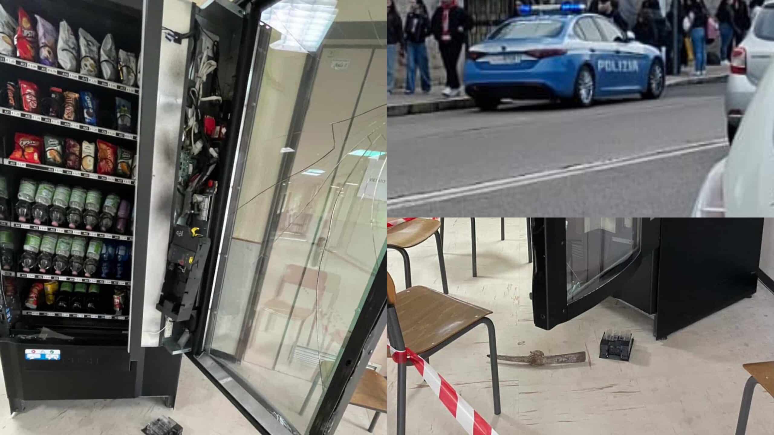 Tre distributori automatici distrutti per portare via qualche moneta, oltre mille euro di danni e disagi per gli studenti che oggi sono entrati a scuola qualche minuto dopo l’orario previsto. “Quando siamo arrivati a scuola abbiamo trovato all’ingresso diversi bidelli, il vicepreside e due poliziotti. Entrando abbiamo poi visto una finestra rotta vicino alle scale e all’ascensore, con i pezzi di vetro a terra delimitati dal nastro” spiegano alcuni studenti a Casteddu Online.