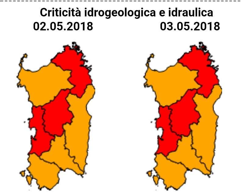 Diffuso anche l’avviso di allerta per rischio idrogeologico e idraulico, criticità moderata (Allerta Arancione), preallarme. A partire dalla mezzanotte di oggi e per le successive 24 ore, si prevede che saranno interessate in maniera particolare le seguenti zone: Campidano, Iglesiente, Montevecchio – Pischilappiu, Flumendosa – Flumineddu, Tirso, Gallura e Logudoro.