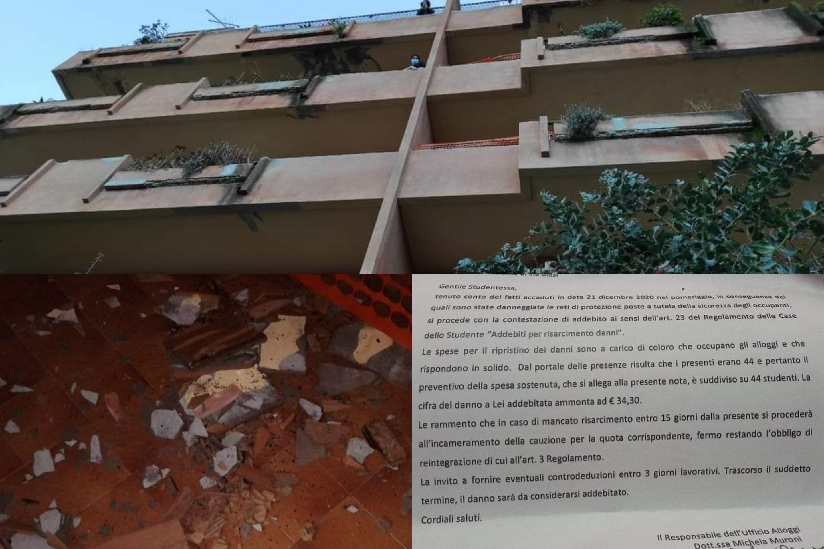 L’Ersu chiede un risarcimento danni agli studenti: 34 euro a ogni studente presente all’azione di protesta avvenuta lo scorso 21 dicembre. A comunicarlo è “Mobilitazione Studentesca Cagliari”: “In data 18/01 gli studenti della Casa della residenza universitaria di via Biasi hanno ricevuto un avviso di richiesta risarcimento danni per l’azione avvenuta il 21/12/20. Dopo i continui silenzi dell’ente a fronte delle numerose richieste di intervento relative a: Messa in sicurezza dei balconi. Garanzia di una rete stabile Wi-Fi per il sostenimento DAD. Intervento per i disservizi del sistema idraulico della struttura