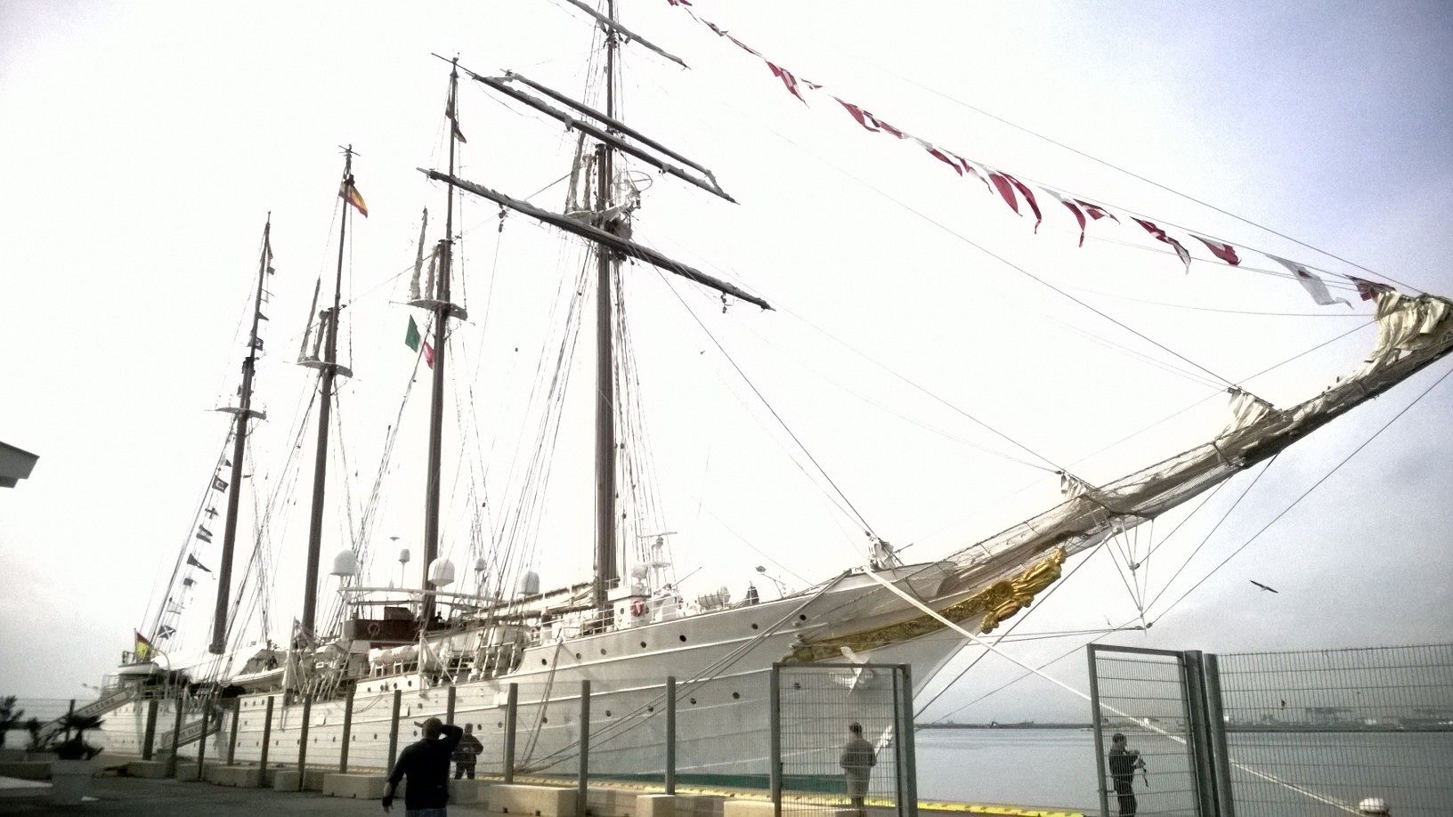 La “Juan Sebastiàn Elcano” é una nave goletta a quattro alberi costruita nel 1927, ed é la seconda nave scuola della Marina militare spagnola. Con i suoi 106 metri di lunghezza , ha una superficie velica che raggiunge quasi 2500 metri quadrati. Svolge lunghe crociere in tutti i mari del mondo, con un equipaggio di 48 ufficiali e 24 marinai, guidati dal comandante Enrique Torres. L’anno accademico a terra viene talvolta interrotto per continuarlo a bordo: sveglia alle 7 del mattino e poi la giornata prosegue tra lezioni di astronomia, meteorologia e navigazione. Ma ogni tanto é concesso qualche svago. Per domenica é infatti prevista una partita con i ragazzi della Primavera del Cagliari.