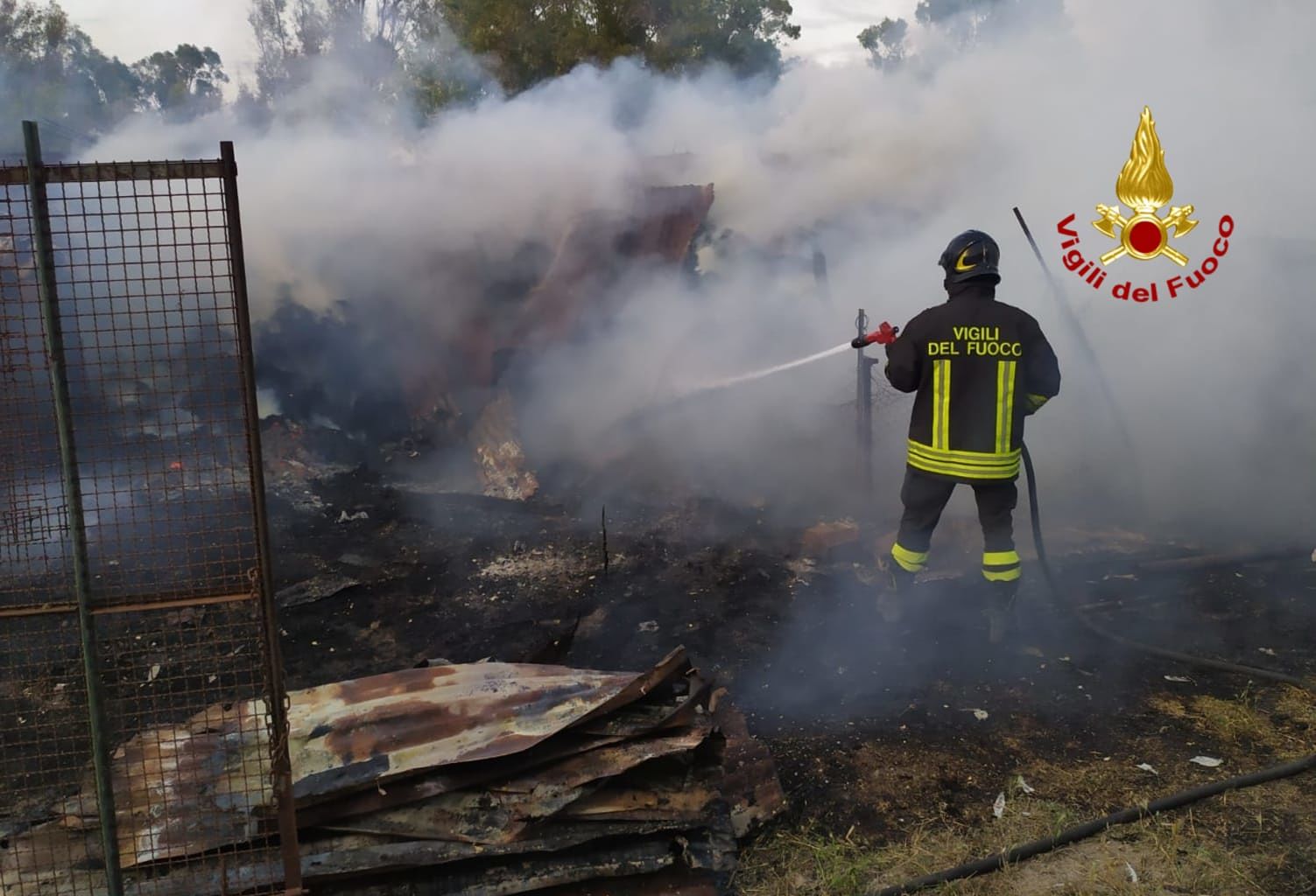 Incendio di rotoballe di fieno un canneto e vegetazione, vicino ad una struttura agricola, a Medau Su Cramu. I Vigili del Fuoco del Comando stanno intervenendo con tre automezzi e sette operatori per spegnere le fiamme, effettuare la bonifica da focolai residui e mettere in sicurezza l’area. Sul posto anche due squadre di volontariato della Protezione civile impegnate per circoscrivere il rogo di vegetazione.