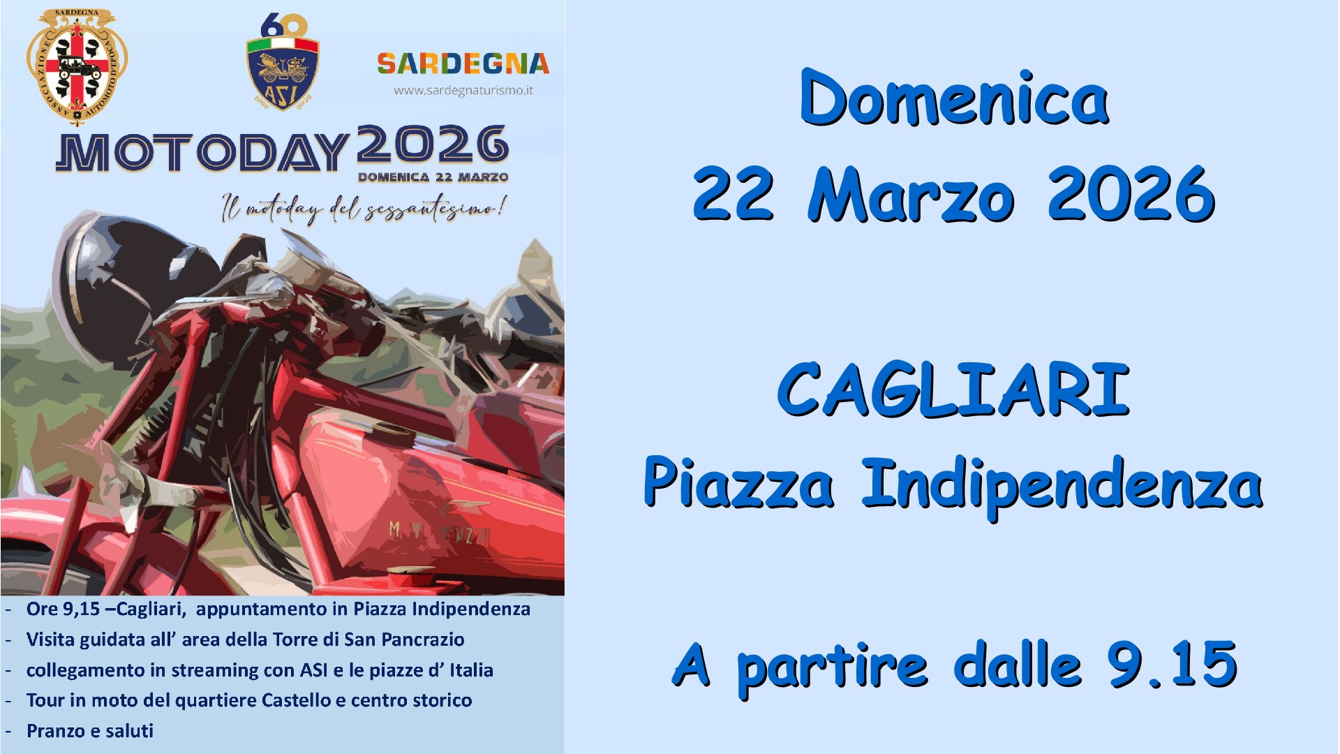 L’evento è organizzato dall’Associazione Automoto d’Epoca Sardegna di Cagliari e si inserisce in un contesto a carattere nazionale creato dall’Asi (Automotoclub Storico Italiano) che prevede la partecipazione di tantissimi Club Federati con l’esposizione dei motoveicoli storici nelle piazze più belle d’Italia.