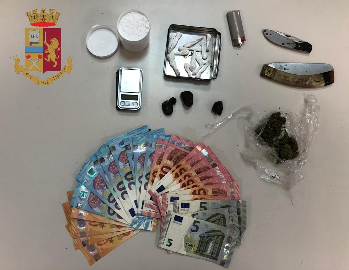 Da un controllo più approfondito all’interno dell’abitazione, inoltre, gli agenti hanno rinvenuto 13 dosi di cocaina, per un totale di circa 4 grammi, 10 grammi di hashish e circa 5 di marijuana. Sono stati rinvenuti inoltre 465 euro in banconote di piccolo taglio, provento appunto dell’attività illegale del giovane, 64 grammi di sostanza da taglio, un bilancino di precisione, 2 coltelli serramanico e tutto il materiale utile al confezionamento della droga.