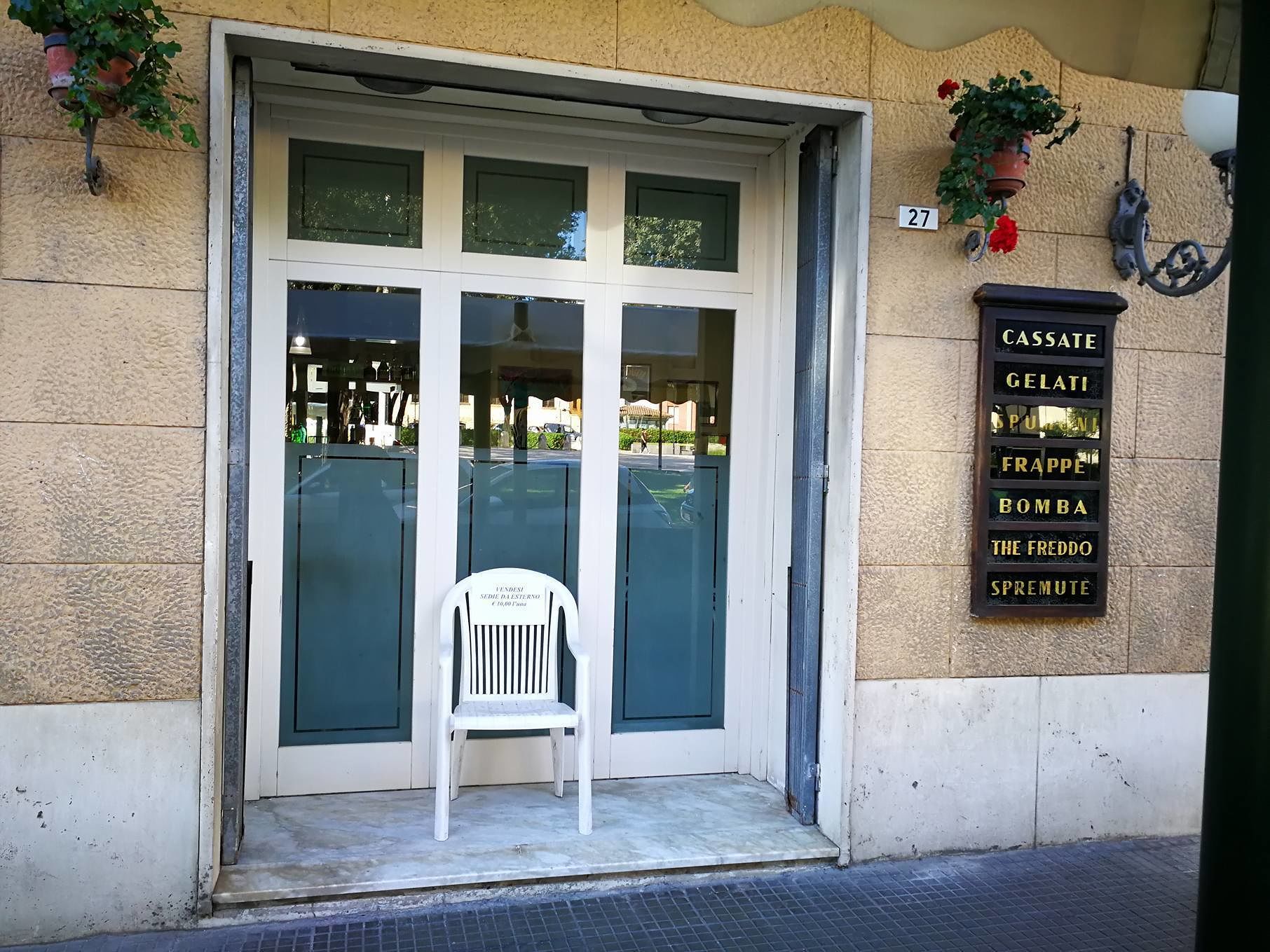 Passo davanti al Caffè Genovese e noto un cartello su una sedia: ” Vendesi sedie da esterno, 10 euro l’una ! ” Incuriosita mi fermo a fare colazione e il titolare mi spiega che per disposizione del Comune ha dovuto ritirare tavoli e sedie e deve rimuovere la costosa struttura, autorizzata molti anni prima. Fine dei caffè all’aperto. Conseguenza della nuova politica comunale, secondo la cui follia dopo aver rimosso il tutto con notevoli spese si può presentare una nuova domanda che rimarrà inevasa per chissà quanto tempo. Se dovesse essere accolta, la domanda in ogni caso dovrà essere presentata di nuovo ogni anno, cosicchè, metti, togli e stai in ansia, rischi di prendere esose multe e buttare i tuoi guadagni a mare. ” Io ci ho rinunziato” mi confida il titolare.