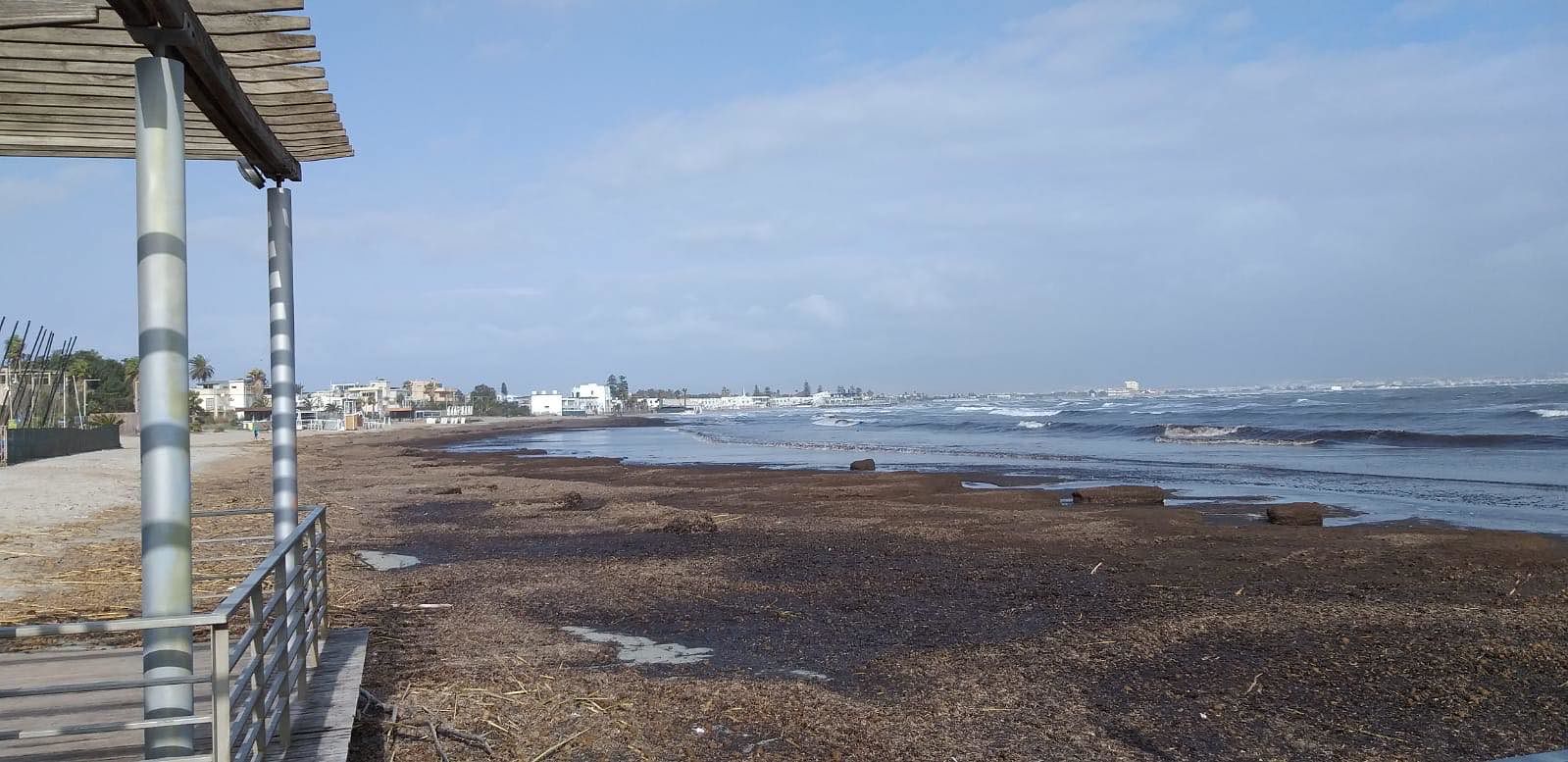 Ecco come si presenta Marina Piccola e la prima parte della spiaggia del Poetto, dopo le violente mareggiata dei giorni scorsi. Non solo canne trasportate dall’acqua e spiaggiate nell’arenile anche tantissime alghe.