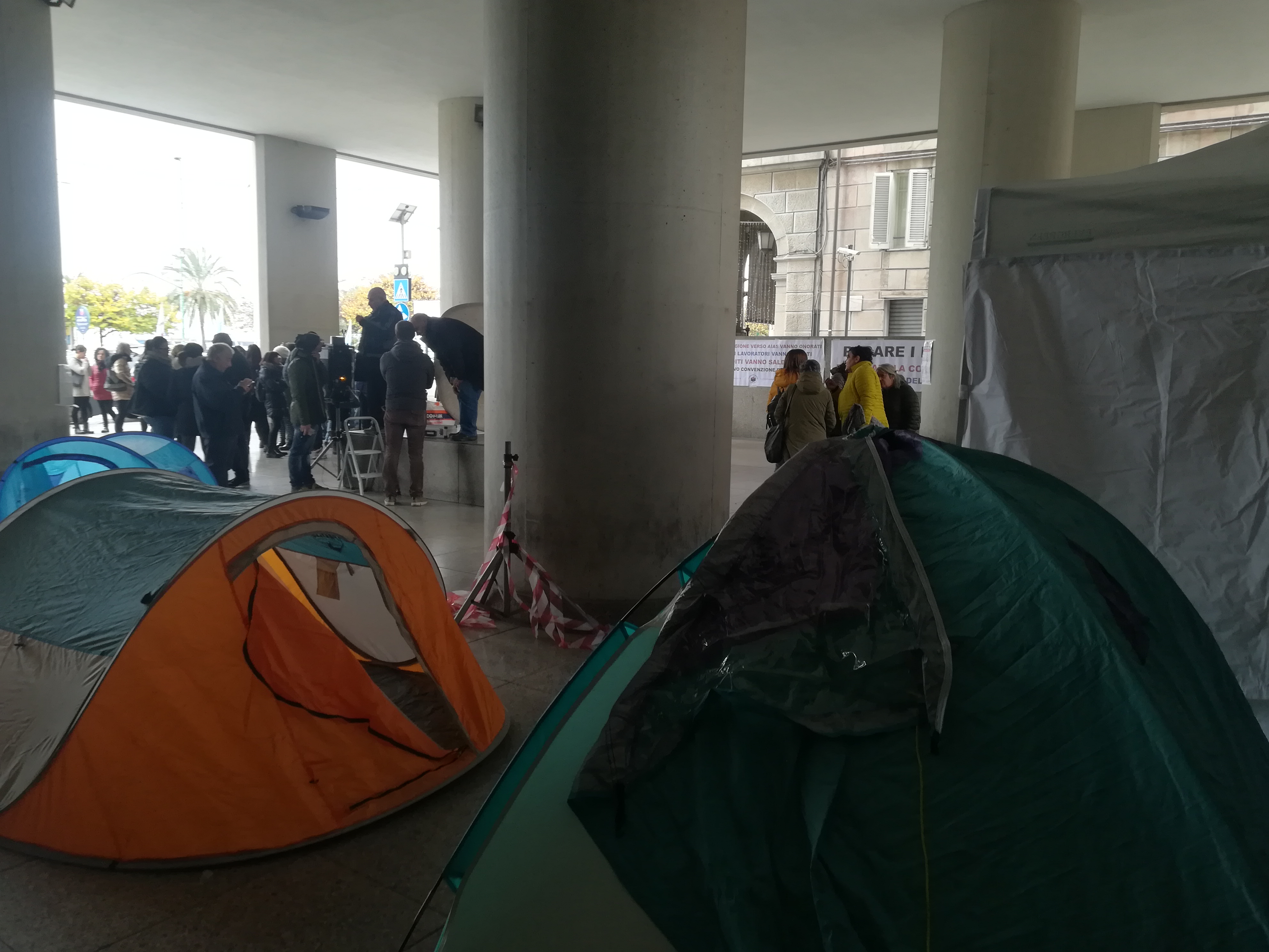 La battaglia di una parte degli operatori dell’Aias va avanti: “Il presidio non si scioglie, continueremo a restare qui nelle tende anche a Natale, se serve”. C’è stato un incontro tra sindacalisti e politici regionali, e le risposte arrivate non hanno contribuito a stemperare gli animi: “Gli otto milioni di euro di debito saranno pagati, ma non prima di febbraio”, denunciano Css e Ugl, “la nuova società pensata da Pigliaru e Arru non ha né capo né coda. Noi da qui non ci muoviamo, dopo i guerrieri della prima notte in serata ne arriveranno altri”. Il riferimento è ai lavoratori che hanno dormito un tenda sotto il palazzo del Consiglio regionale.