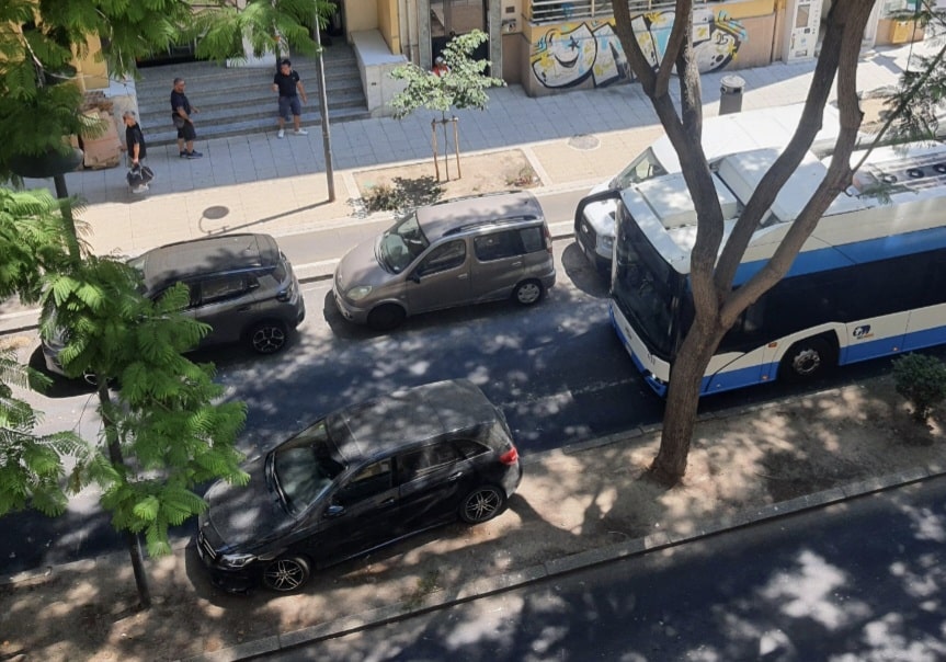 Cagliari, parcheggio creativo in via Dante, sopra lo spartitraffico un mezzo in sosta: notato e immortalato da un cittadino, racconta la soluzione di chi, evidentemente, non ha molta voglia di ricercare una sosta consentita.