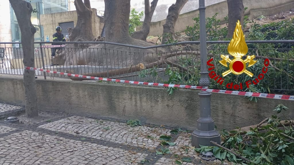 Fortunatamente nella caduta il ramo non ha coinvolto nessuna delle persone che transitavano in quel momento ma ha danneggiato una struttura della recinzione.