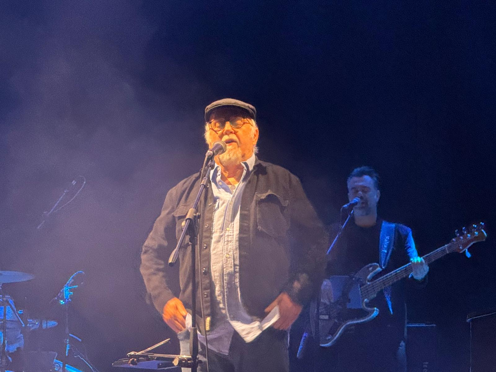 È sempre lui. Nuragico. Inflessibile e incisivo, rivoluzionario e mordace. Parte con una pagina di Emilio Lussu e sciorina ad uno ad uno tutti i suoi pezzi più significativi: le canzoni più rappresentative del suo repertorio bilingue, da “Fuori campo” a “Stazzi uniti”, da “Mere Manna” a “Quando Gigi Riva tornerà”, “Rundinedda”, “Ses tue” e molte altre. E racconta i cambiamenti di un’epoca: le emozioni perdute, le lotte in cui la sua generazione ha tanto creduto, le motivazione dell’impegno nel presente, tra cui il sussidio per Beniamino Zuncheddu, dopo trent’anni di carcere da innocente. Con una strepitosa band, un concerto di quasi tre ore, offerto ad un pubblico cagliaritano esultante, nella carne viva delle ideologie senza i like.