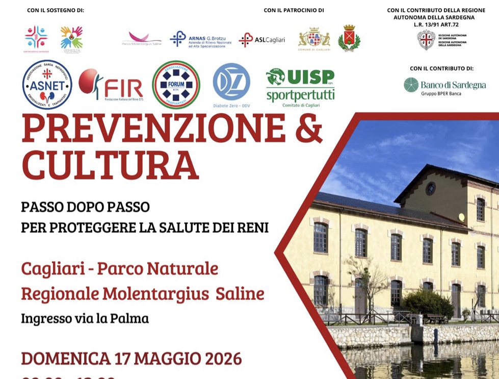 Una mattinata all’insegna della prevenzione, della salute e del benessere all’aria aperta. Domenica 17 maggio 2026, a Cagliari, il Parco naturale regionale Molentargius-Saline ospiterà “Prevenzione & Cultura”, un’iniziativa dedicata alla tutela della salute dei reni e alla promozione di corretti stili di vita.