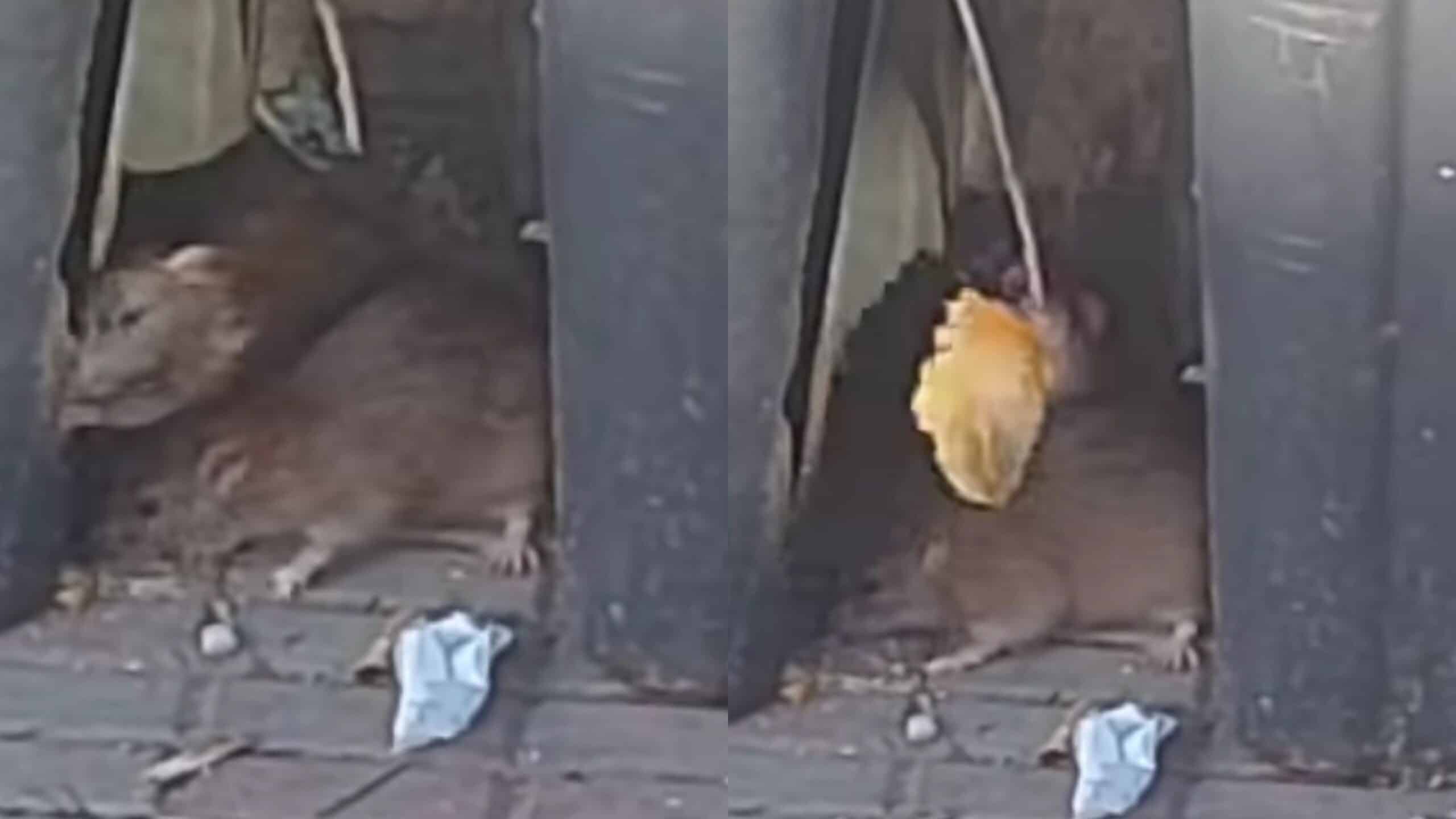 Via Abruzzi, “capolinea della linea numero 3”: ecco due grossi topi che sanno bene dove infilare le zampette per recuperare un abbondante pasto. Tra le fessure di un bidone rotto, uno osserva e l’altro aggancia qualcosa che sembrerebbe una fetta di pane. Indisturbati, tra cartacce e cicche di sigarette buttate in terra, il bottino è assicurato. Un fenomeno non nuovo quello dei ratti che passeggiano in città, infatti il 15 gennaio è in programma un intervento di derattizzazione che interesserà le pertinenze pubbliche delle vie: delle Ginestre, Cuoco e Fratelli Bandier da parte degli operatori del Servizio Antinsetti della Città Metropolitana.