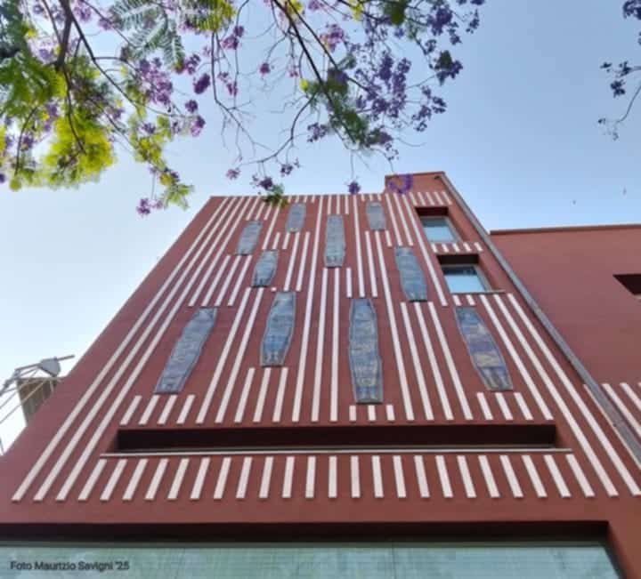 Col passare del tempo l’edificio venne “adottato” nell’immaginario collettivo della gente come il Palazzo dell’alta moda, per la presenza sui vari livelli dello stabile, di prestigiosi brand, messi insieme dal noto marchio cagliaritano di negozi che ha vestito generazioni di persone. Probabilmente il palazzo trovò spazio fisico in uno tra i tanti svuotamenti causati dalle bombe, quello compreso tra via Baylle, via Dettori, ed il Largo Carlo Felice; l’idea progettuale fu di Ubaldo Badas, un “quasi architetto”, geniale, che ha segnato l’architettura cagliaritana del dopoguerra, in positivo oseremmo dire, considerando tra le varie opere anche l’ingresso dei Giardini Pubblici, e la passeggiata di Terrapieno; tuttavia il “Palazzo Costamarras” suscitò non poche polemiche per le sue ardite linee moderne che fanno a pugni con il contesto architettonico adiacente, ma Cagliari è anche questo, lo sappiamo. Dagli albori della costruzione, datata 1956, commissionata dalla Premiata Ditta “Costa Marras”, gli ambienti dislocati sui piani della palazzina hanno visto passare generazioni di persone, tutte intente a misurare l’abito dell’occasione sotto lo sguardo professionale dei maestri della sartoria, che hanno, con onestà ed un pizzico di crudo cinismo, correttamente orientato il vestire nei momenti importati della vita di tanti cagliaritani, e non solo di quelli. Poi è arrivato il tempo del’inevitabile restauro, perché il tempo, purtroppo non è stato galantuomo, ma implacabile, lasciando segni che prima o poi andavano risistemati, quindi occorreva mettere mano alle carte per districarsi nei meandri acquitrinosi della burocrazia, ed ovviamente ai soldi, tanti, che la nuova proprietà, è riuscita comunque a sopperire, per l’amore verso il patrimonio storico della città, che ha voluto in tutto i modi preservare, ripristinando le linee verticali che facevano da cornice alle dieci figure incastonate tra le belle tessere in maiolica bordeaux, forse tutto non è stato ripristinato esattamente come prima, ma il quasi tutto sì, e questo è assolutamente positivo, per riportare alla luce un pezzo di storia cittadina.