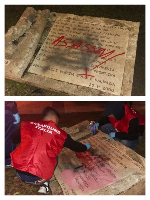 “Non è il primo atto vandalico contro i nostri connazionali massacrati nell’ex Jugoslavia che si registra a Cagliari” – dichiara CasaPound in una nota – “a febbraio cancellammo, a poche ore dalla loro comparsa, diverse scritte sui muri di alcune scuole della città che recitavano ‘I love foibe’”.