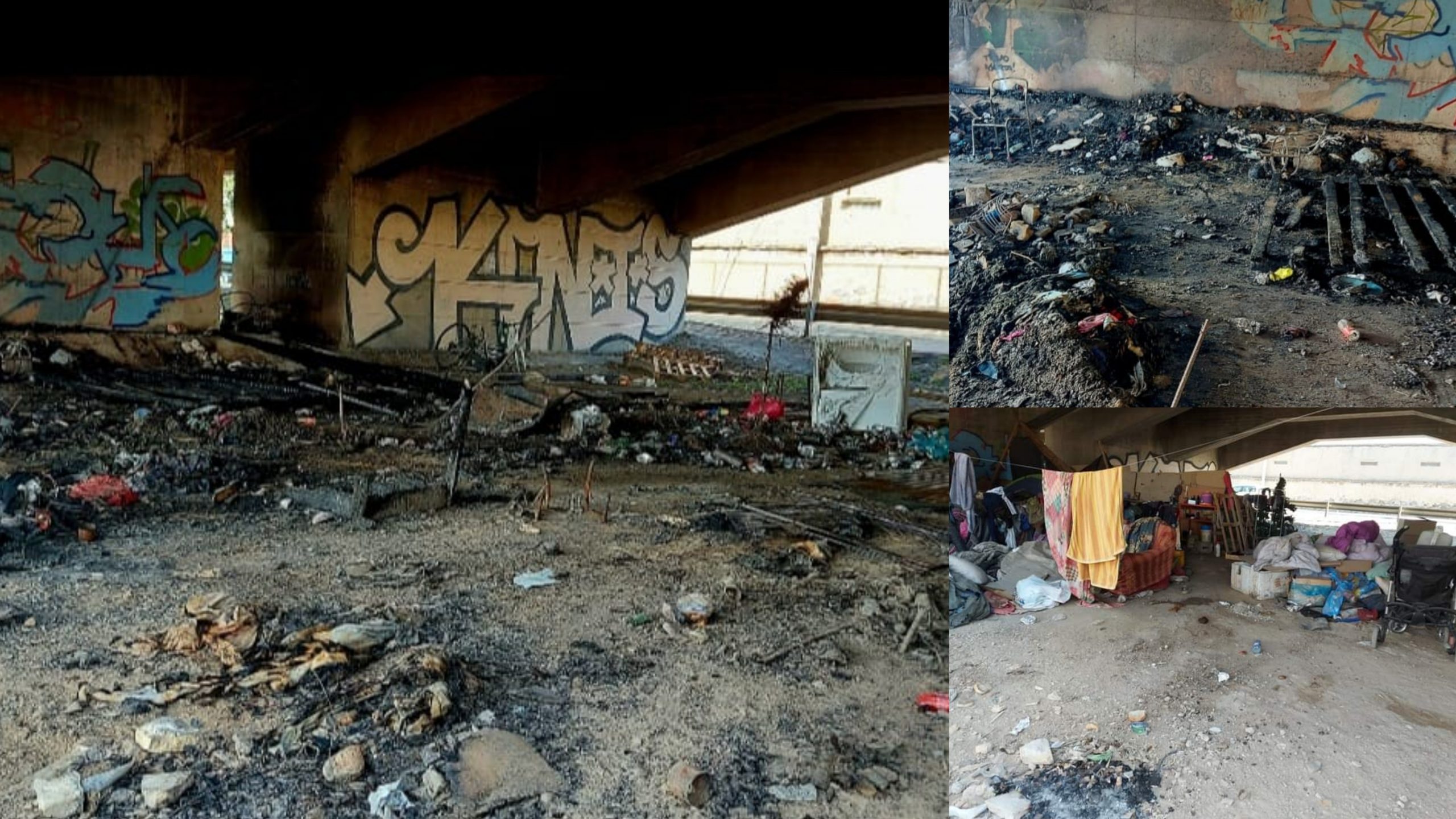 Cause sconosciute dell’incendio che tra venerdì e sabato ha completamente incenerito il rifugio di chi casa non ha ma abita in quell’angolo riparato, sotto gli occhi di una città che corre, instancabile e frenetica: invisibili per tanti ma non per Giulia e i suoi amici, volontari che da tempo si prodigano anche per loro, per gli abitanti sotto quel cavalcavia dove centinaia di macchine sfrecciano a ogni ora del giorno e della notte. Appena appresa la notizia, Giulia, Laura e tutti gli altri si sono subito attivati per porre rimedio al disastro e sono bastati pochi messaggi e qualche telefonata per mettere da parte le prime risorse da donare. “Ieri durante la nostra consegna della cena organizzata dal mio gruppo abbiamo trovato i ragazzi disperati, ci hanno raccontato che il rogo è avvenuto nella notte, si sono svegliati di soprassalto mentre erano quasi avvolti dalle fiamme alte. Sul luogo sono intervenuti i vigili del fuoco, quando ormai era già devastato tutto, compresi i pochi effetti personali in loro possesso, oltraggiando ancor più la loro dignità. In questo momento si trovano senza nemmeno la loro “capanna” di fortuna, servirebbe un alloggio, vista anche la loro precaria salute minata dalla vita trascorsa in strada. Non avevano più indumenti, e le poche provviste di cibo ridotte in cenere. Oggi siamo andati nuovamente e abbiamo provveduto a portare il minimo indispensabile per qualche giorno anche perché non possono mettere le cose nuove sulla cenere rimasta; hanno perso anche il cellulare l’unico modo di comunicazione tra noi per le cose urgenti. Noi con le poche risorse che abbiamo non essendo un’associazione cerchiamo di fare quanto più ci è possibile in base alle nostre possibilità. Aiutateci ad aiutare, ricordandovi sempre che il dono più prezioso è il tempo e che quando lo dedichi con amore viene moltiplicato” spiegano i volontari.