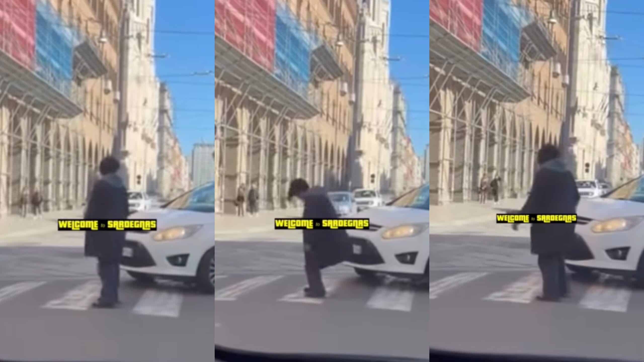 Il video, pubblicato dalla pagina social Welcome to Sardegnas, mette in evidenza il pericolo scampato dalla donna che, già in altre occasioni, ha tentato di fermare il traffico. Pochi giorni fa, infatti, si è posizionata al centro della carreggiata di fronte alla stazione dei treni mentre sopraggiungeva un motociclista: anche in quel caso non ci sono state conseguenze negative per chi guidava e per lei. Il rischio è che possa essere travolta, per questo motivo, tra i tanti commenti, si legge la richiesta di aiuto per evitare altre situazioni analoghe a queste.