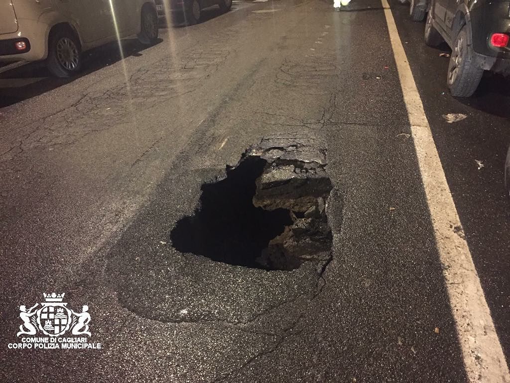 Cagliari, si apre una maxi voragine nella notte in via Pola: strada chiusa al traffico. Dopo la mega buca di via dei Conversi, ecco un altro crollo dell’asfalto in città: in via Pola è intervenuta a tarda sera la Polizia Municipale, la voragine è enorme nei pressi di viale Trento.