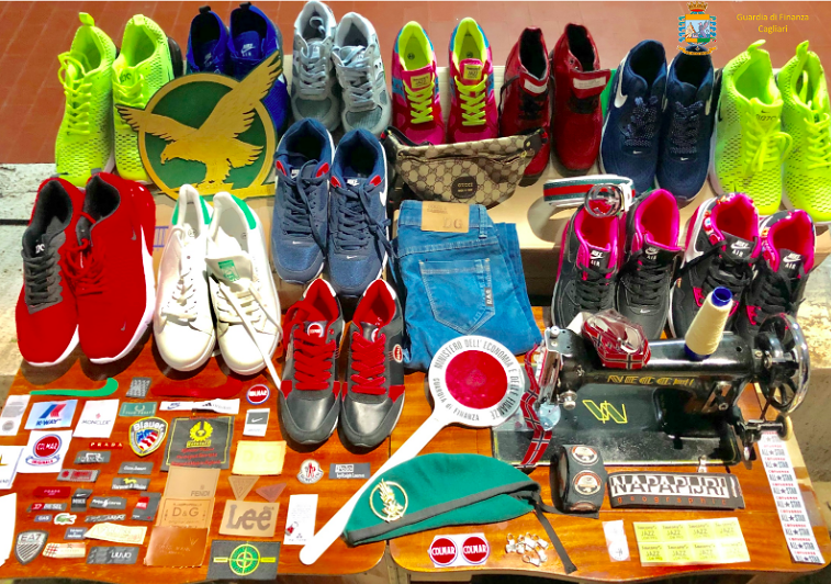 Cagliari, contrasto al mercato del falso: sequestrati 295 articoli tra accessori e capi di abbigliamento e 15.910 etichette. Due gli arrestati e una persona denunciata dalla guardia di finanza.