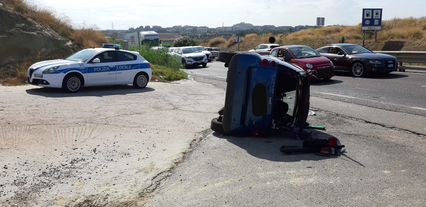 Una Mercedes e una Smart che stavano percorrendo la 131dir in direzione Sestu hanno avuto uno scontro laterale. A seguito dell’urto la Smart ha prima colpito il guard rail al centro della carreggiata e poi si è ribaltata e, strisciando sulla fiancata destra, ha teminato la corsa in una stradina laterale. Il conducente della Smart, un giovane selargino di 26 anni, è rimasto ferito lievemente ed è stato subito soccorso da un’ambulanza del 118 e trasportato all’ospedale Marino. Illeso il conducente della Mercedes, un cagliaritano di 38 anni.